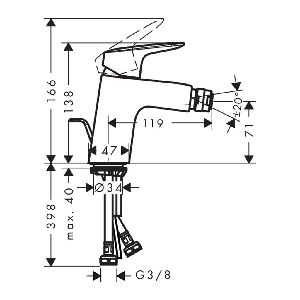 - Beépítési mód: G ⅜ tömlők csatlakoztatása