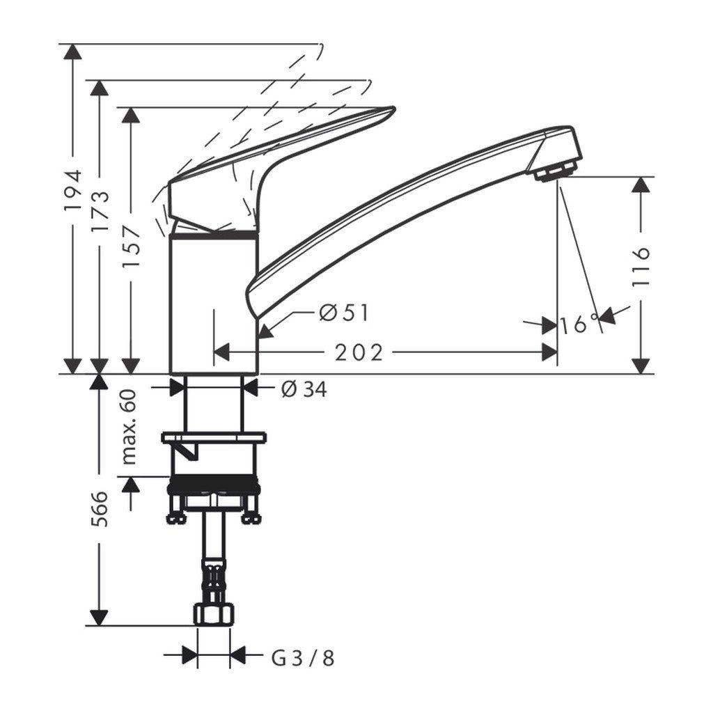- Beépítési mód: G ⅜ tömlők csatlakoztatása