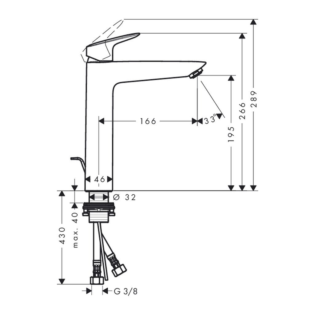 Hansgrohe Logis, karos mosdócsaptelep 190, lefolyókészlettel, króm, 71090000