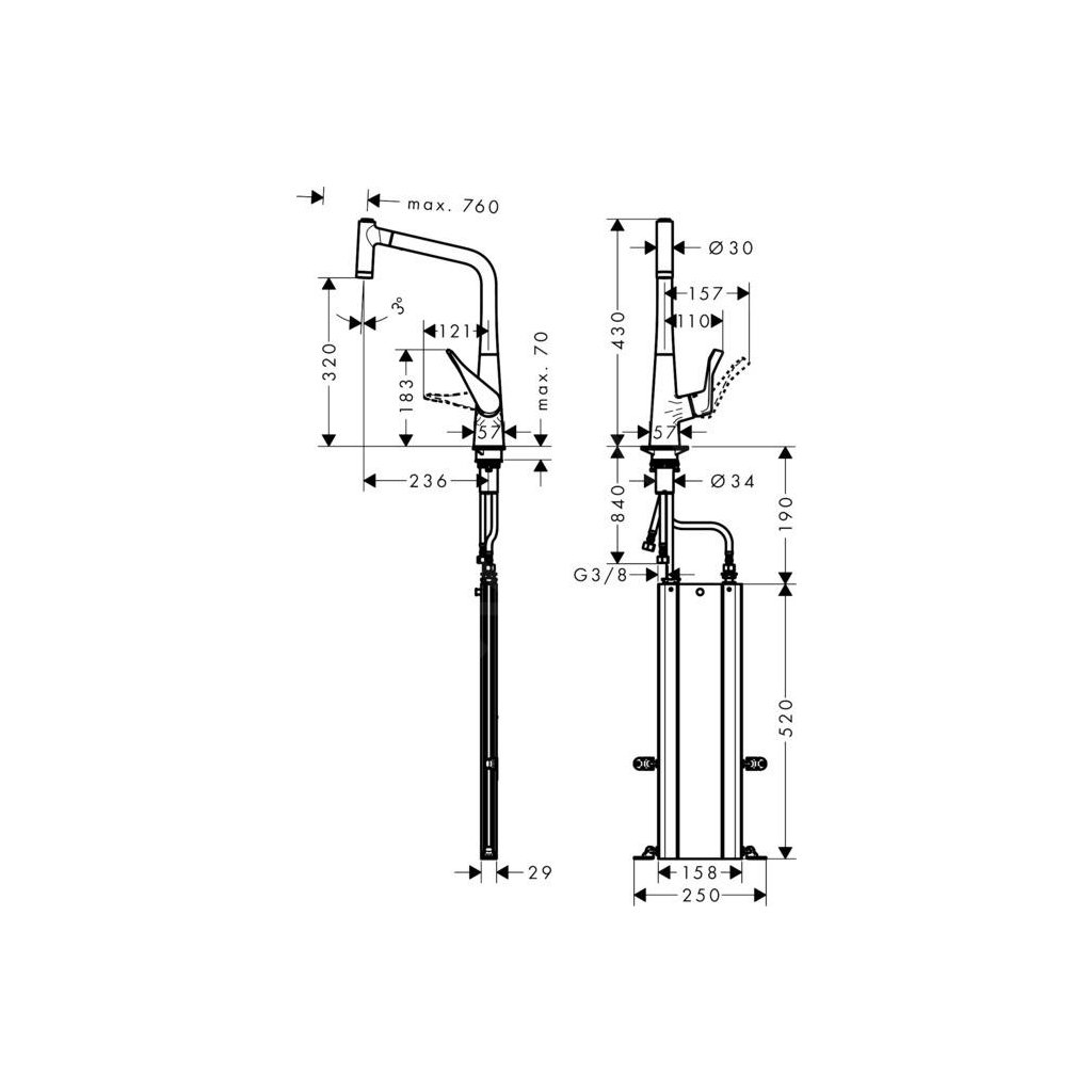 Hansgrohe M71, mosogató csaptelep M7116-H320 kihúzható spray-vel, sBOX, rozsdamentes megjelenés, HAN-73801800