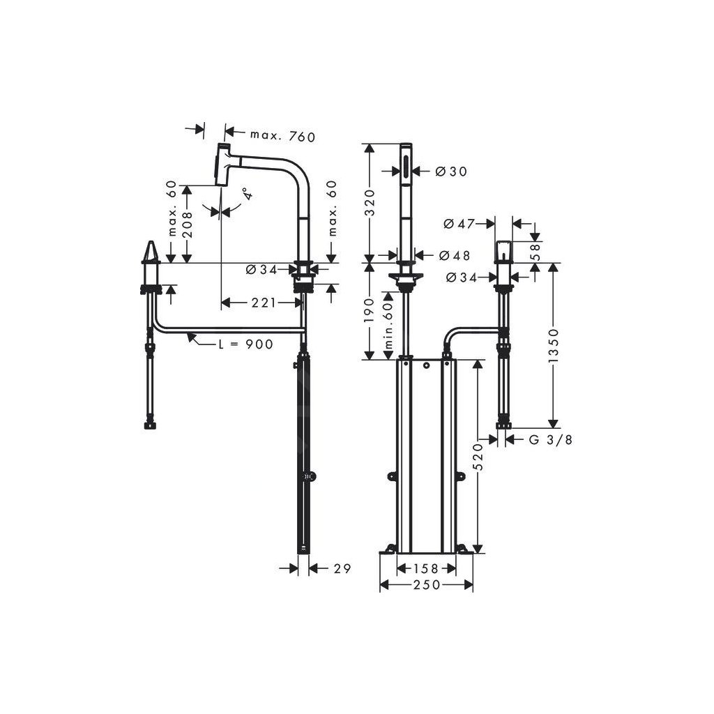Hansgrohe M71, mosogatócsaptelep M7120-H200 kihúzható spray-vel, 2 lyukú beépítés, sBOX, króm, 73818000