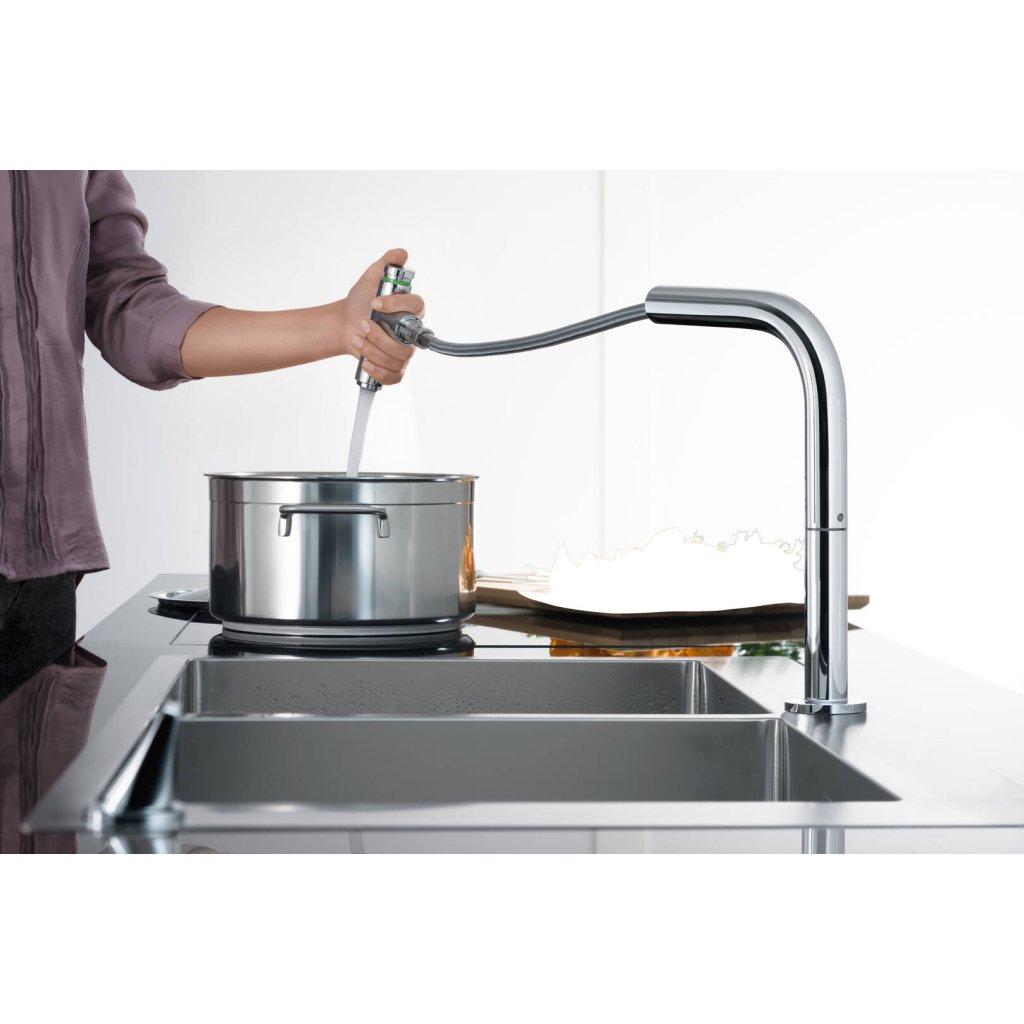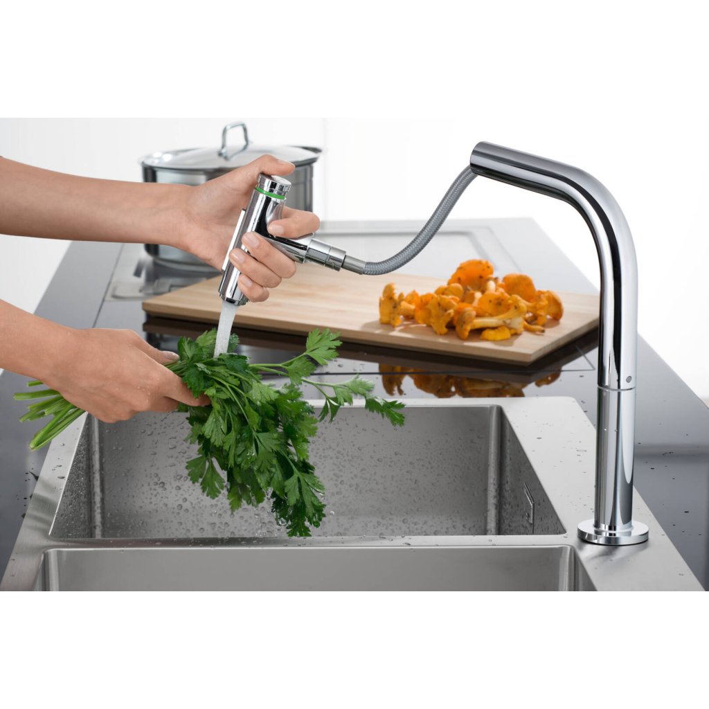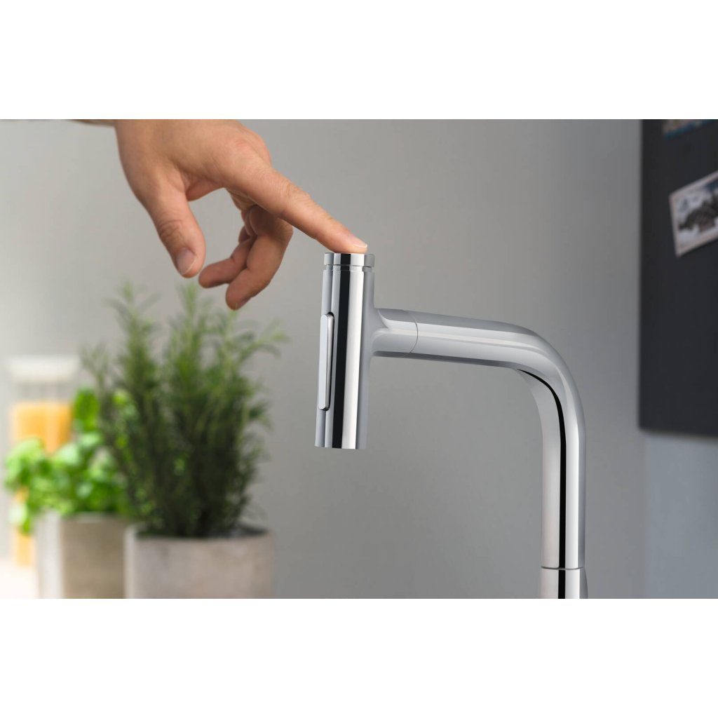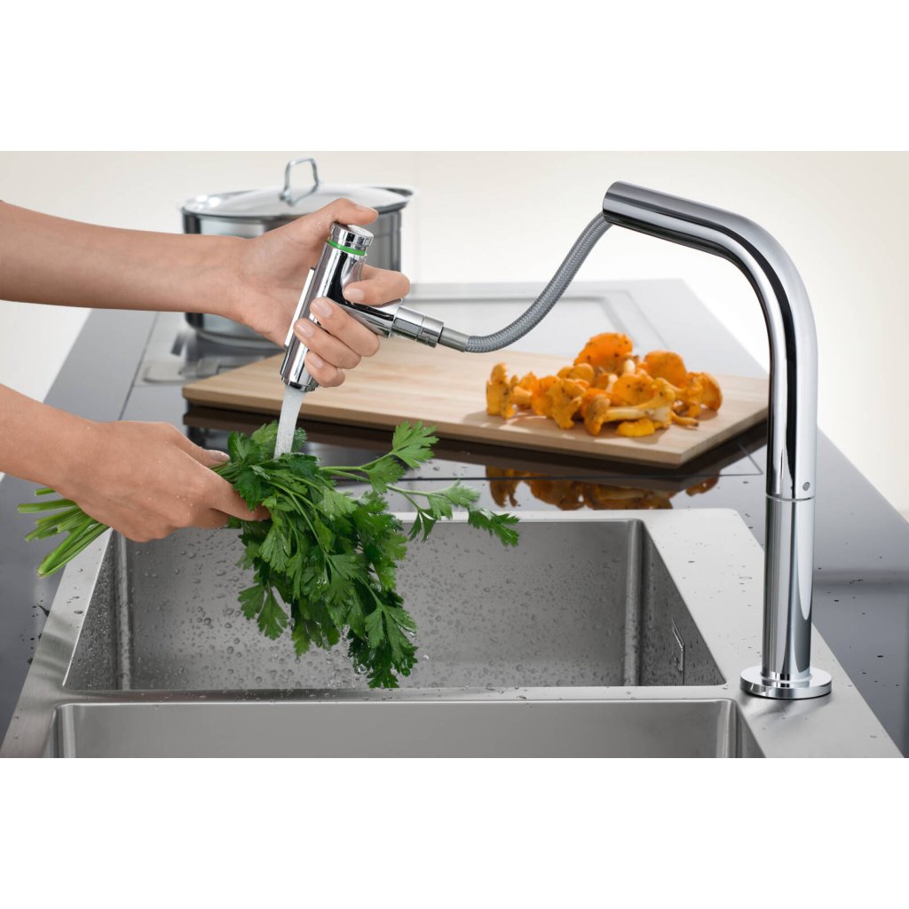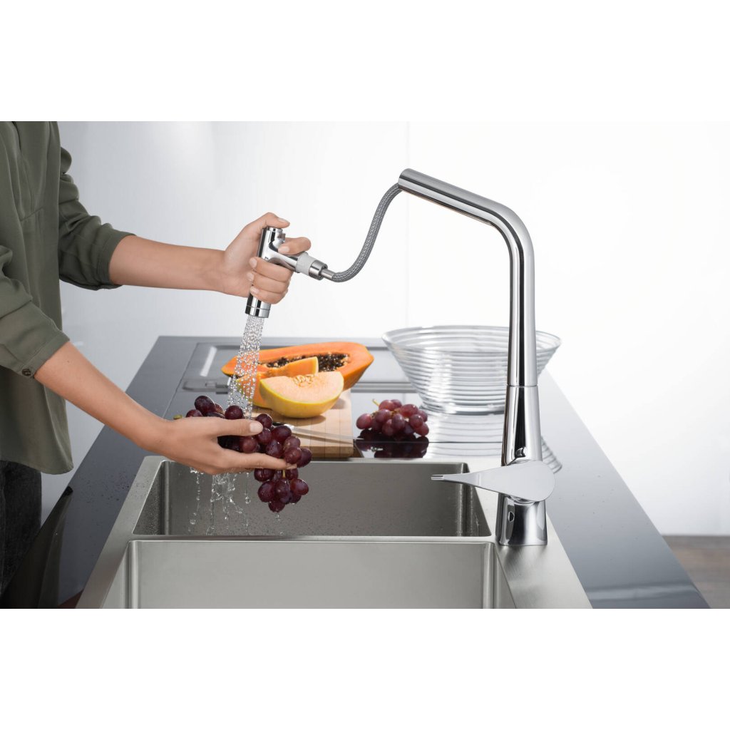 A legforgalmasabb konyhai kisegítők közé tartoznak a mosogató csaptelepek. Az M71 sorozat olyan konyhai csaptelepeket kínál, amelyek nem csak egyedi megjelenésükkel tűnnek ki, hanem számos praktikus tulajdonsággal is. A klasszikus emelős csaptelep mellett választhatunk kétlyukú beépítést is. A behúzható zuhanyzóval felszerelt változatok a legigényesebb elvárásokat is kielégítik. A kellően magas L alakú kifolyó, a kellemesen hosszú permetezőtömlő és a váltakozó vízáramok lehetősége nemcsak a zöldségek és gyümölcsök gyors és hatékony öblítését teszi lehetővé, hanem a terjedelmes edények egyszerű kimosását is. Többféle felületkialakítás közül választhat konyhája számára.