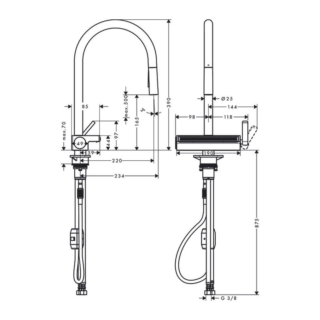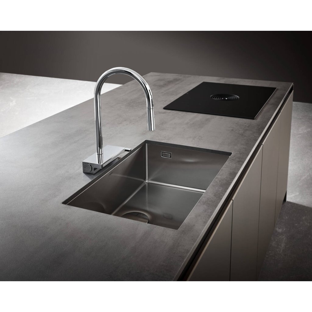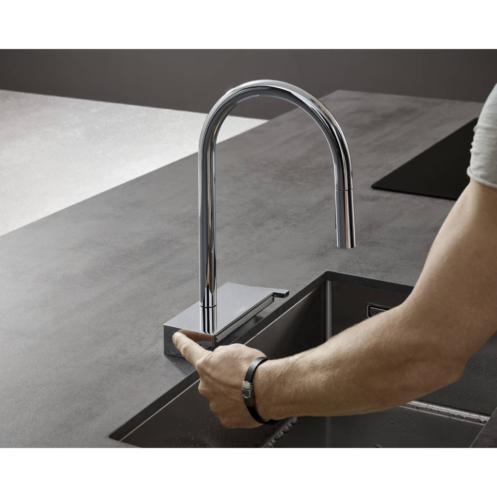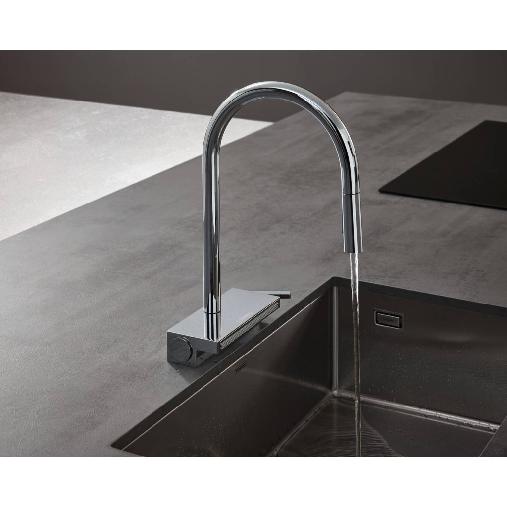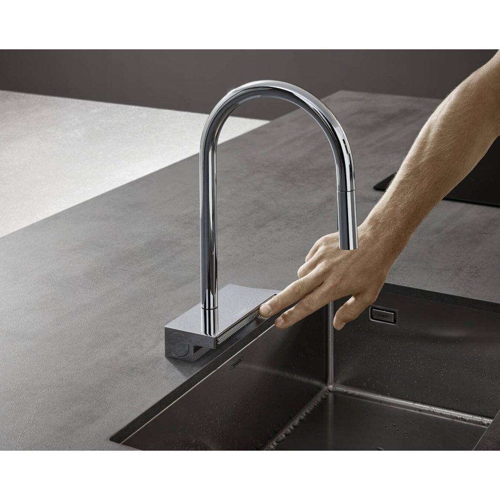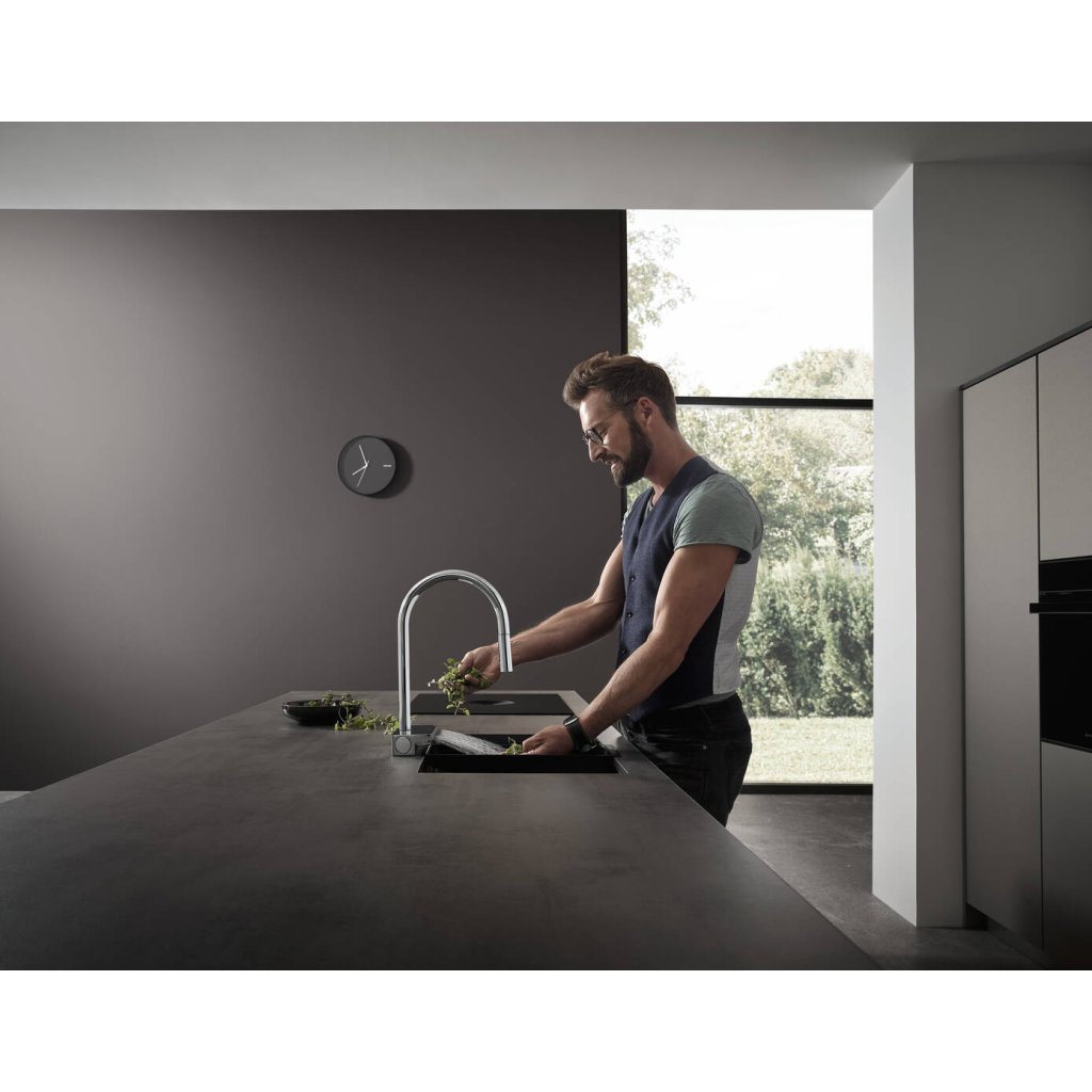 A hansgrohe Aquno Select mosogatócsaptelep úgy néz ki, mintha csak a távoli jövőből érkezett volna. Meg fog lepődni rendkívül időtlen dizájnjával és progresszív megjelenésével. Behúzható véggel és egyedi és lapos zuhanysugárral van felszerelve. Ez egy teljesen új típusú lamináris SatinFlow zuhanysugár, amely 133 különálló vékony vízsugárból áll. Finoman és hatékonyan veszik körül a törékeny alapanyagokat, és alaposan és kíméletesen mossák le.