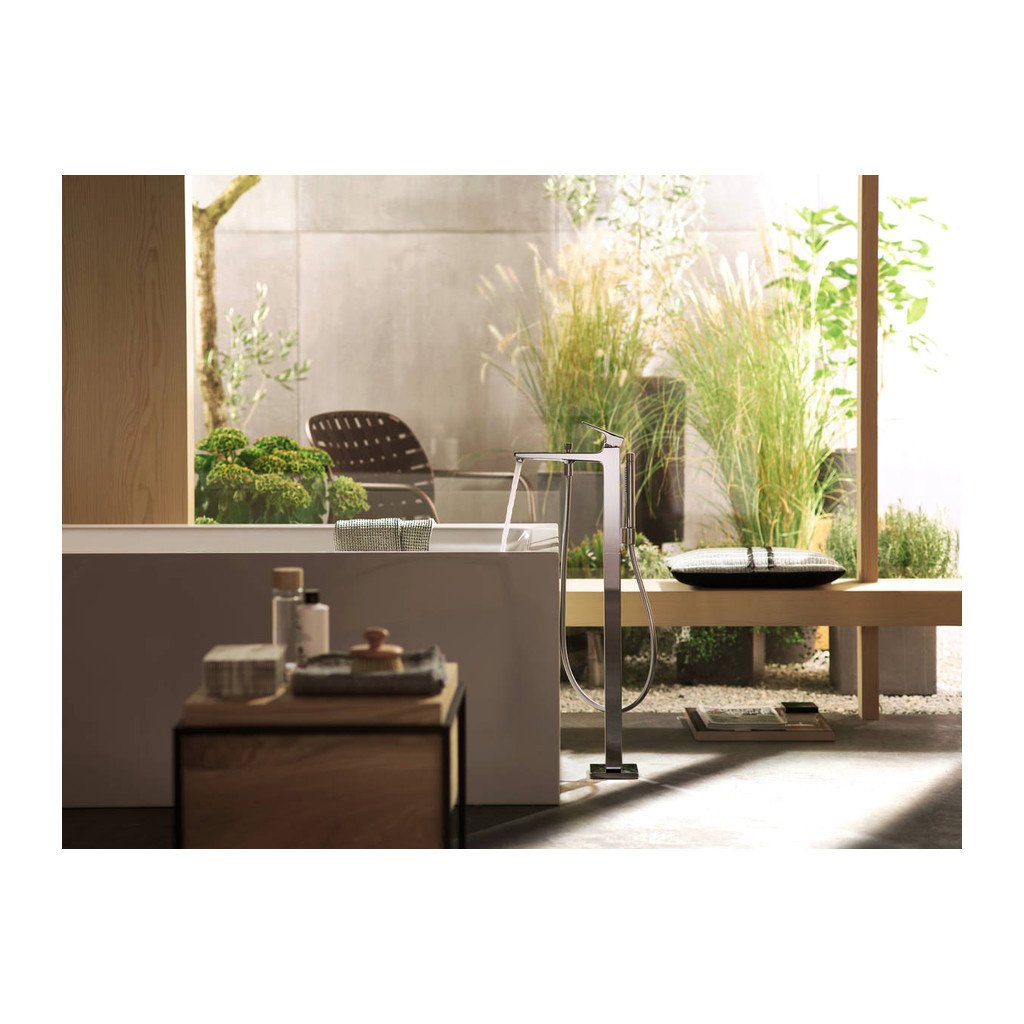 A Hansgrohe Metropol padlón álló kádcsaptelepen nem csak a kiváló dizájnt, hanem a kiváló minőséget is értékelni fogja, amelyet még sok évnyi csaptelep használata után is értékelni fog. A Hansgrohe Metropol padlón álló kádcsaptelep kiváló minőségű kerámiapatront tartalmaz, amely biztosítja a teljes csaptelep problémamentes működését élettartama során. Ennek a padlóra szerelhető fürdőcsaptelepnek egy része egy rúd kézizuhany, amely kétféle fúvókával van felszerelve - Rain és MonoRain . A kézizuhany egy zuhanytartóval és egy 1250 mm hosszú sima zuhanycsővel van kiegészítve. Egy perc alatt 21 liter víz folyik át a Hansgrohe Metropol kádcsaptelepen. A kád kifolyójának mérete 235 mm.