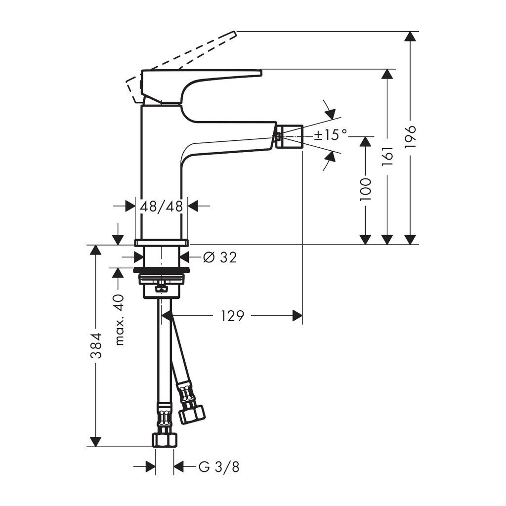 - Beépítési mód: G ⅜ tömlők csatlakoztatása