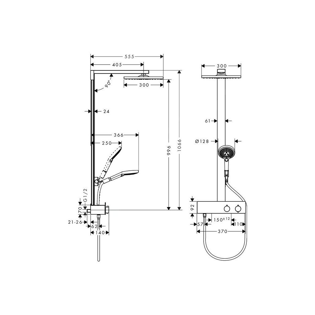 Hansgrohe Raindance E, zuhanygarnitúra Showerpipe 300 termosztáttal 350 EcoSmart 9 l/perc, króm, HAN-27362000