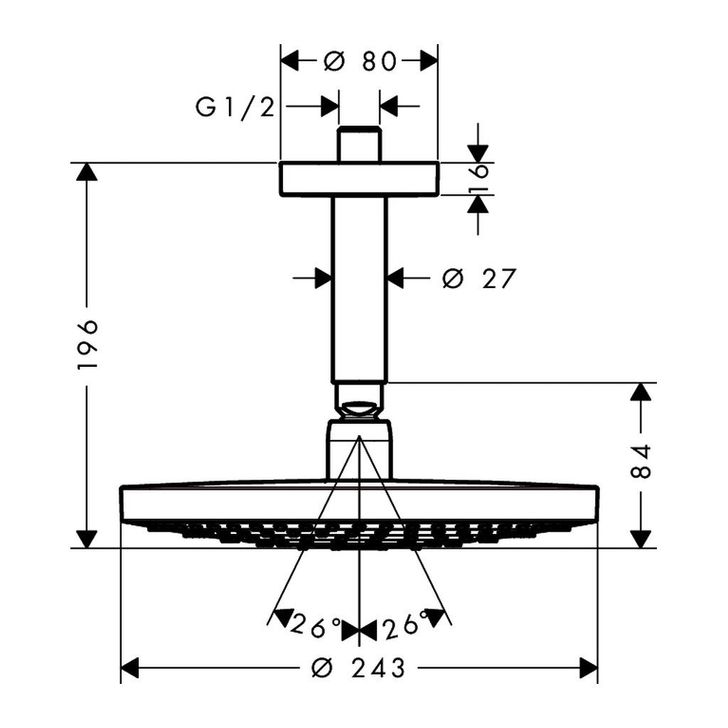 - Zuhanyfej mérete: Ø 243 mm