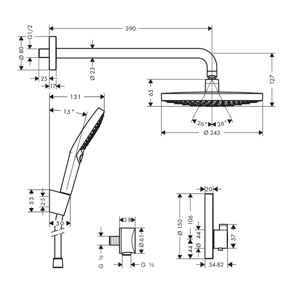 Hansgrohe Raindance Select S, rejtett zuhanyrendszer ShowerSelect S termosztáttal, króm, HAN-27297000