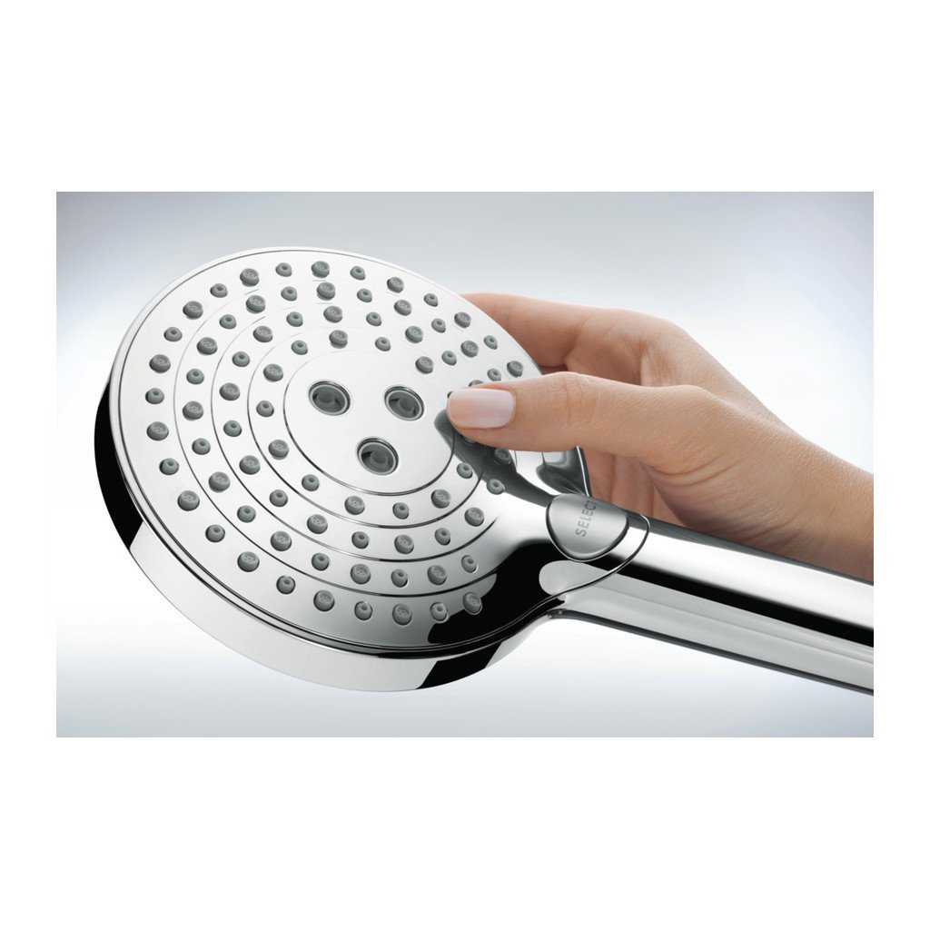 - A Select gomb leegyszerűsíti a napi rutint a fürdőszobában, és egyetlen megnyomással elindíthatja vagy leállíthatja a víz áramlását. Zuhanyozás közben nyomja meg a Select gombot az áramlás típusának megváltoztatásához, vagy váltson a fejzuhany és a kézizuhany között