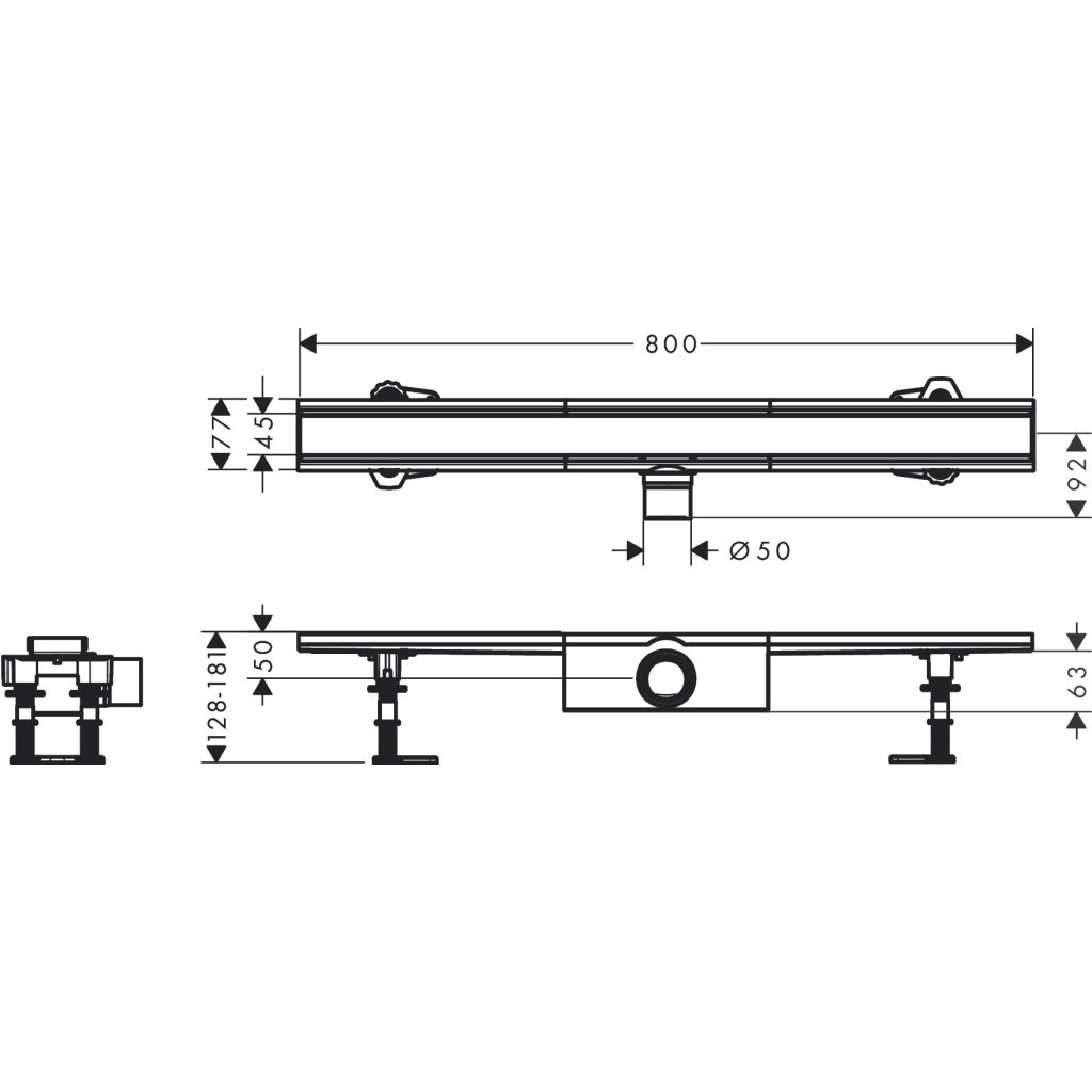 Hansgrohe RainDrain Compact, 800-as zuhanylefolyó komplett készlete standard felszereléshez, szálcsiszolt rozsdamentes acél, HAN-56178800