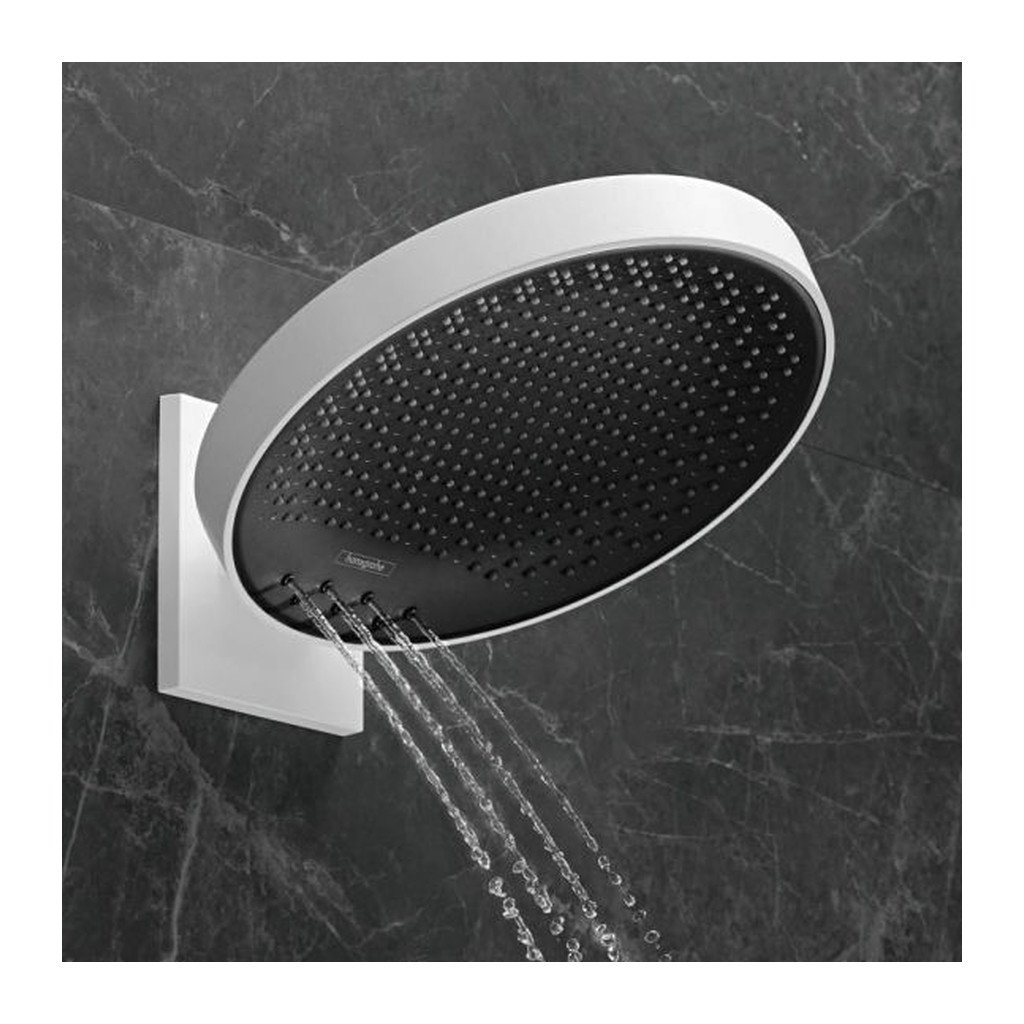 *A dizájnfotók illusztrációk, és a Hansgrohe Rainfinity fejzuhany matt fehér színben látható