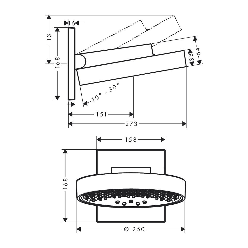 - A zuhanyfej függőlegesen 10-30°-kal dönthető