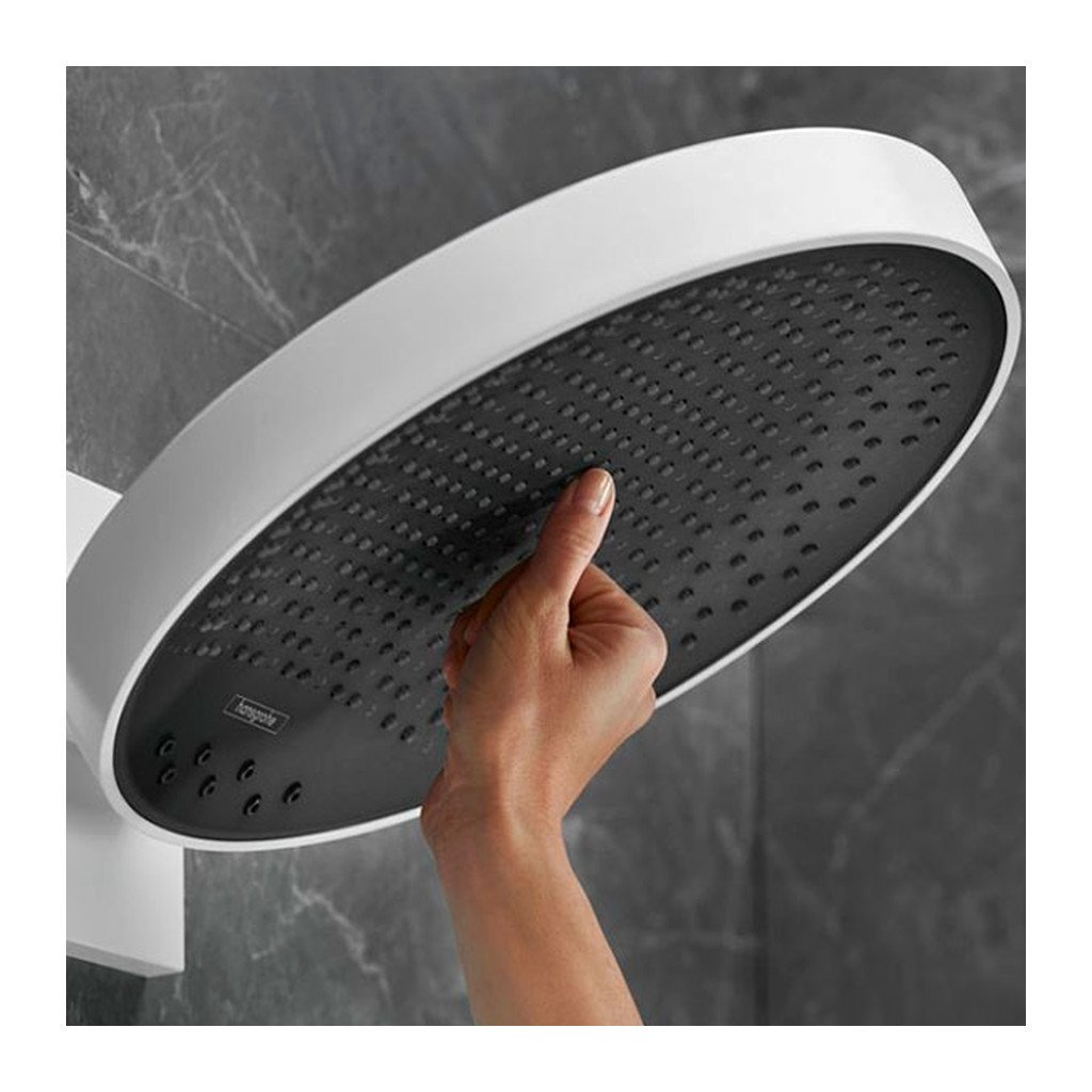 *A dizájnfotók illusztrációk, és a Hansgrohe Rainfinity színes fejzuhany látható