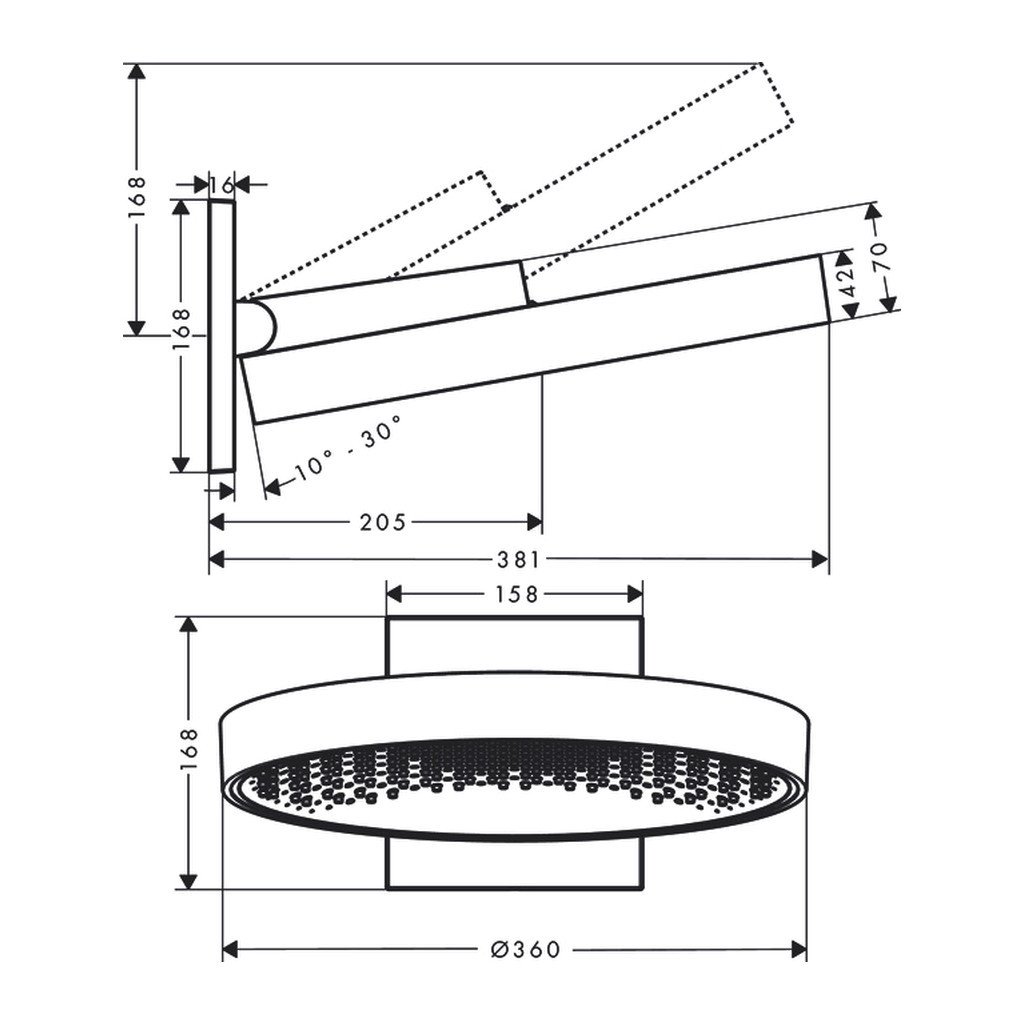 - A zuhanyfej függőlegesen 10-30°-kal dönthető