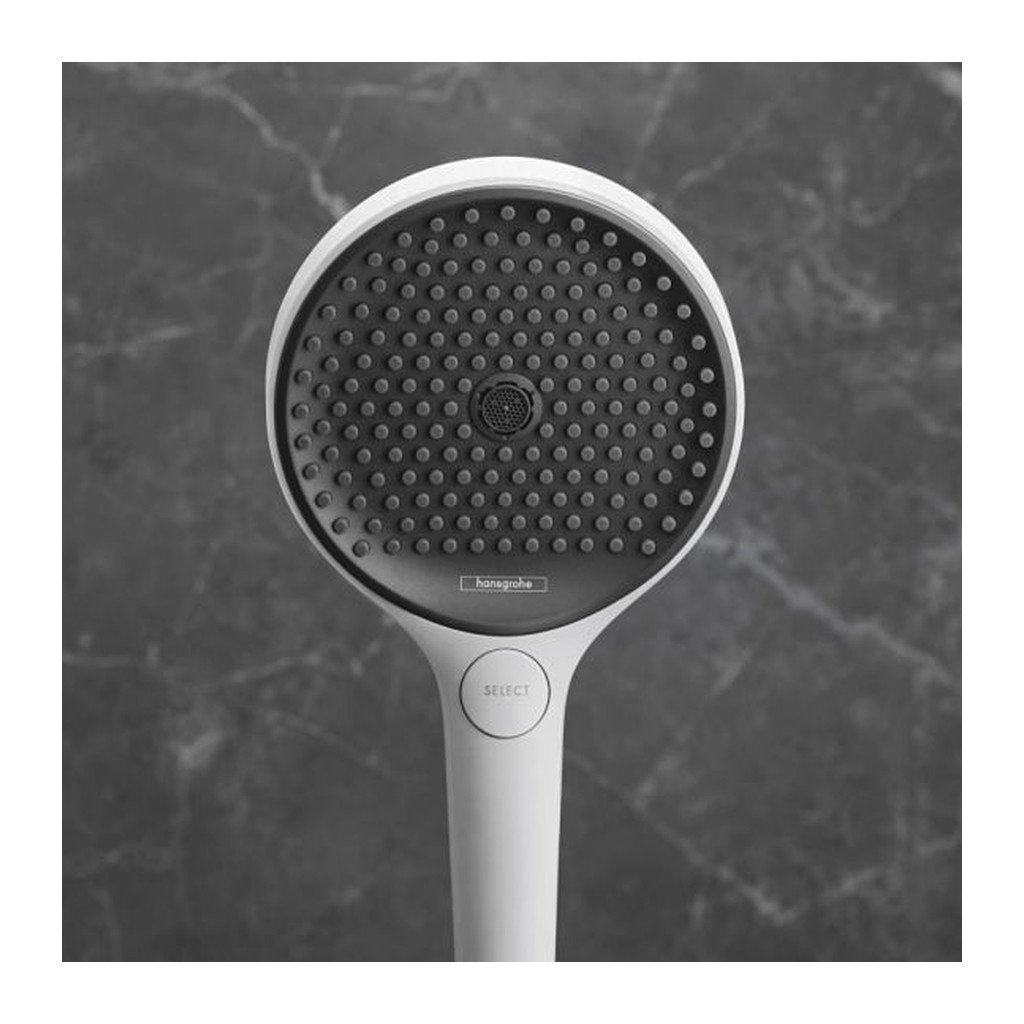 - A Select gomb leegyszerűsíti a napi rutint a fürdőszobában, és egyetlen megnyomással elindíthatja vagy leállíthatja a víz áramlását. Zuhanyozás közben nyomja meg a Select gombot az áramlás típusának megváltoztatásához, vagy váltson a fejzuhany és a kézizuhany között