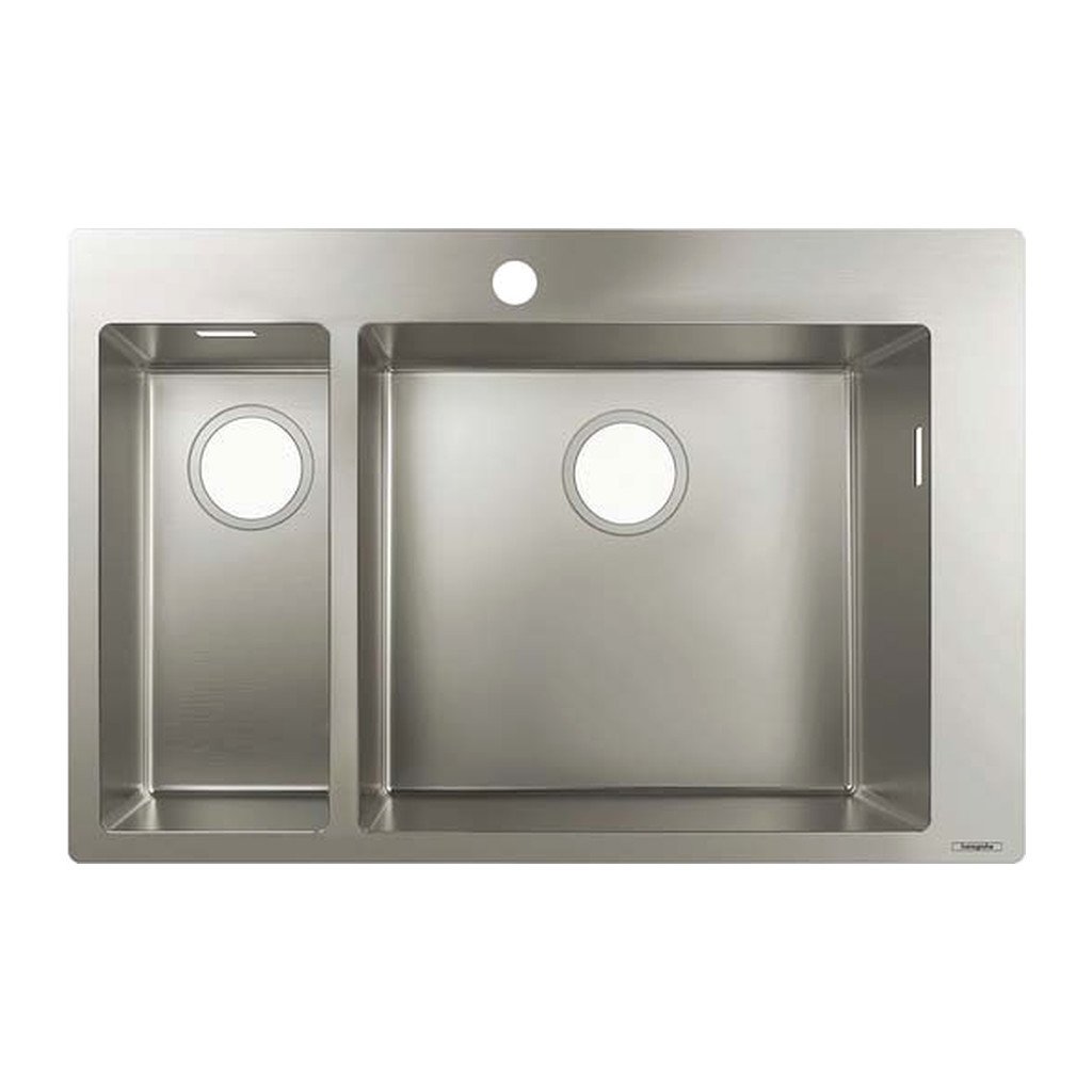 Hansgrohe S71, rozsdamentes acél dupla mosogató 180/450 1 furattal a csaphoz, rozsdamentes acél, HAN-43309800