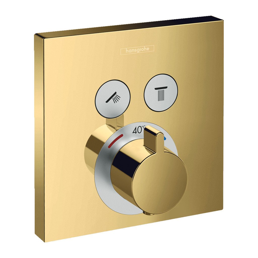 Hansgrohe Shower Select, rejtett termosztatikus csaptelep 2 készülékhez, csiszolt arany megjelenés 15763990