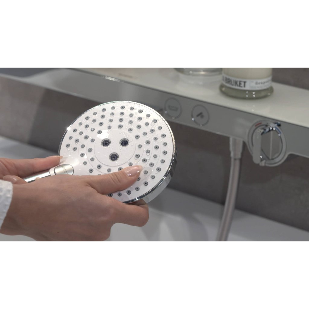 Egy gombnyomással megváltoztathatja a patak vagy a zuhany típusát. Az elemek nagyon egyszerűen működtethetők a Select gombbal. A gomb megnyomásával nem csak a víz indítása és leállítása történik meg, hanem lehetőség van az egyes fúvókatípusok kézi- vagy fejzuhanyhoz való cseréjére is. A termosztáttal ennek az integrált technológiának köszönhetően teljes precizitással lehet elindítani és leállítani a vízáramlást, illetve különböző zuhanyokat választani. Szükség esetén kéz nélkül is vezérelheti az akkumulátort, mert a gomb kézzel vagy könyökkel intuitív módon váltható. A Hansgrohe Select gomb minden nap egyszerűséget garantál, és ideális mindazok számára, akik értékelik a kényelmes és kellemes zuhanyozási élményt.