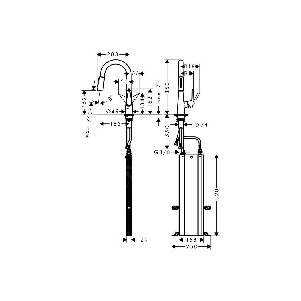 Hansgrohe Talis M51, mosogató csaptelep M5116-H200 kihúzható spray-vel, sBOX, rozsdamentes megjelenés, HAN-73851800
