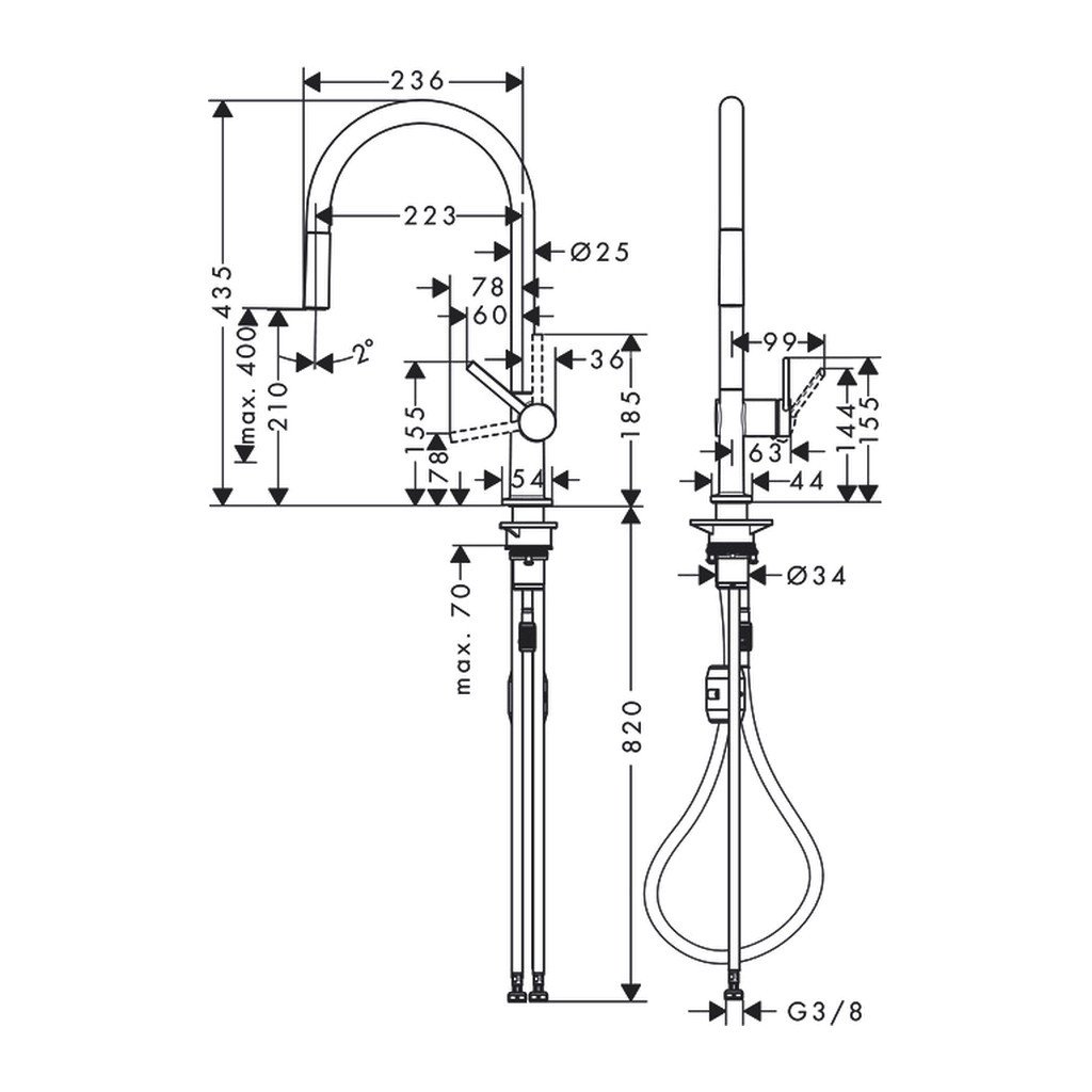 - Beépítési mód: G ⅜ tömlők csatlakoztatása