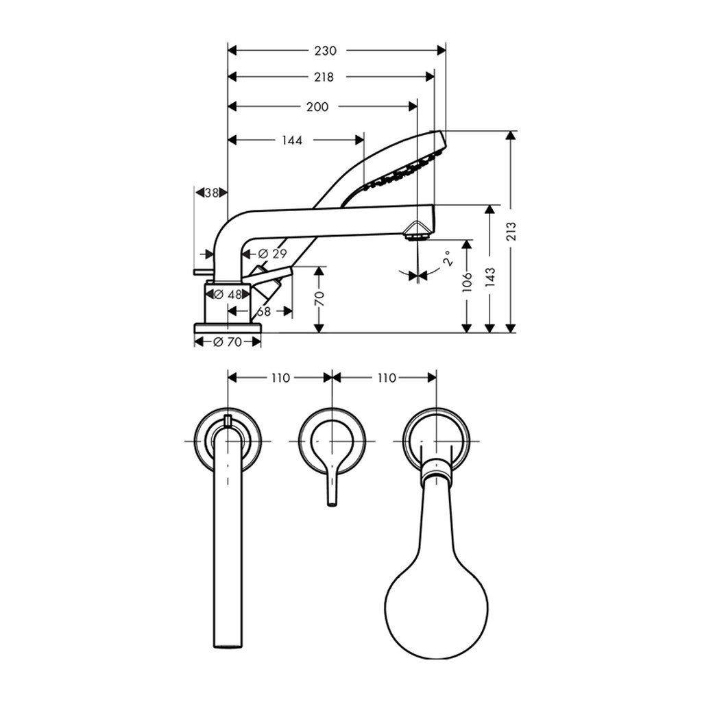 - Tartalma: 3 lyukú karidom a kád széléhez, kézizuhany, Secuflex tömlőkészlet