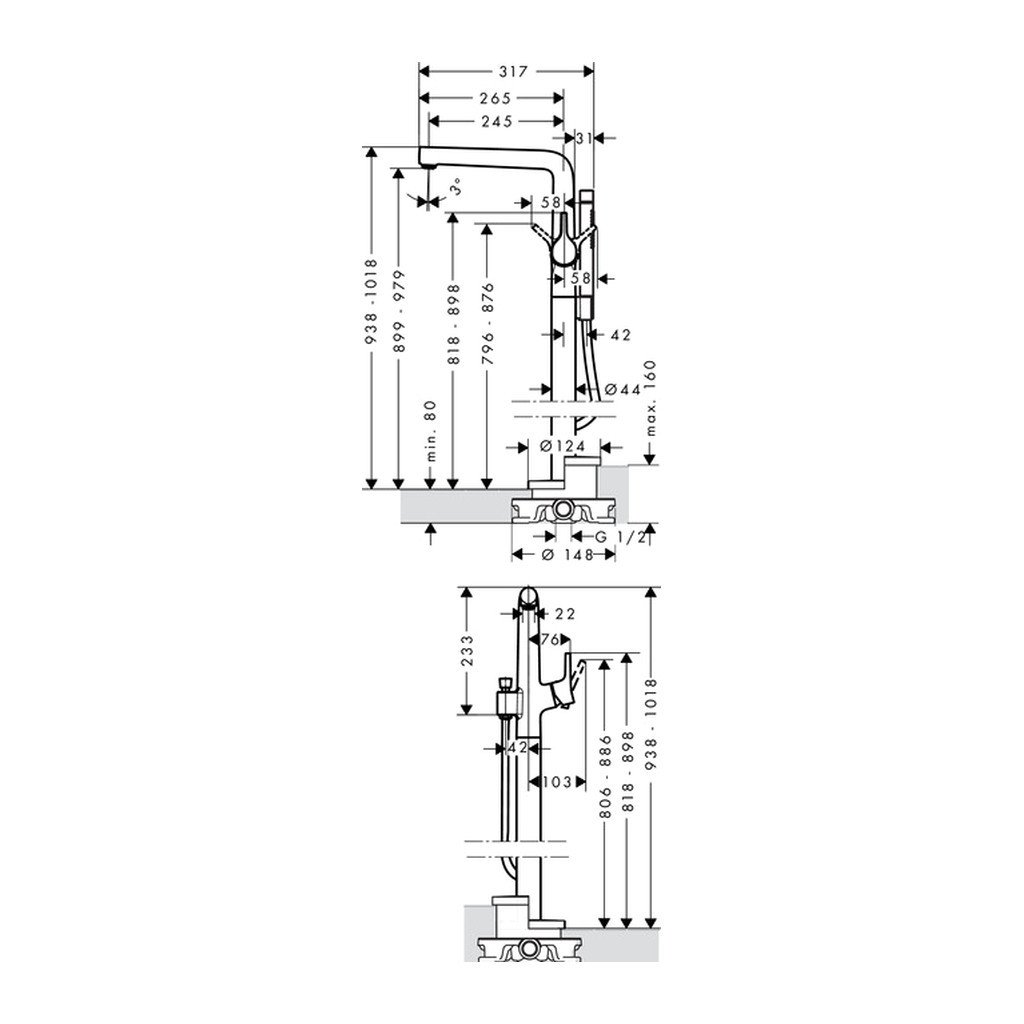 - Típus: Fürdőkaros csaptelep padlóba szereléshez