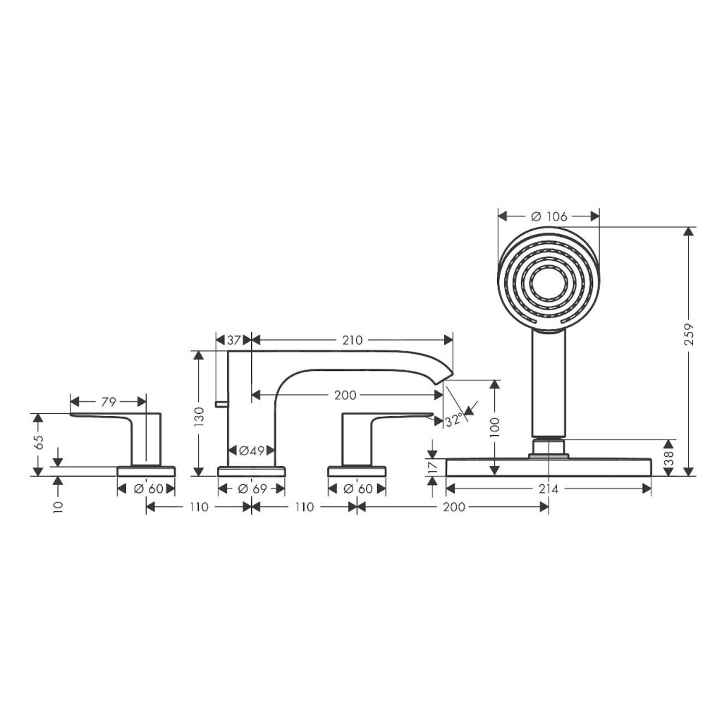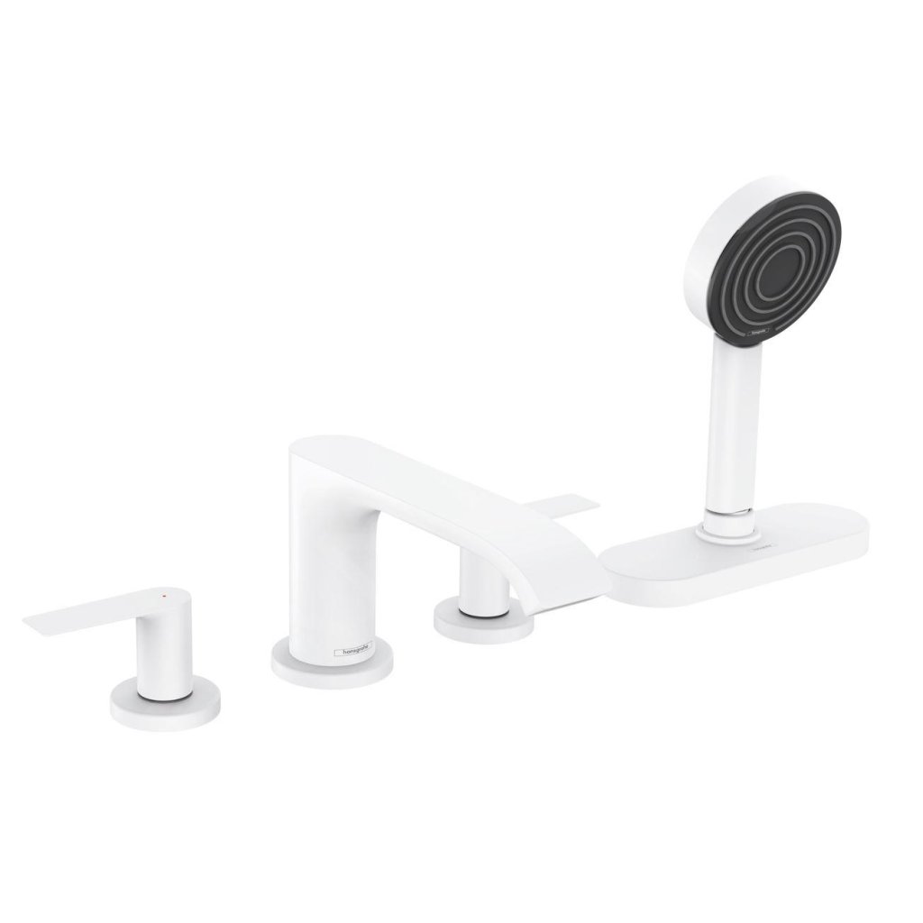 A fürdőkád szélén található hansgrohe Vivenis négylyukú kádcsaptelep rendkívül elegáns és letisztult dizájnt tisztel, amely az egyediség benyomását kelti a fürdőszobában. Puha és friss matt fehér színben készült. Tartalmaz egy 100 mm átmérőjű kihúzható kézizuhanyt, amely kellemesen levegőztetett PowderRain áramlást biztosít. Ezen a kézizuhanyon percenként 9,5 liter víz folyik át. A fürdőkád csaptelep egyedi WaterfallStream-mel van felszerelve . Egy perc alatt 23,9 liter vizet önt a fürdőkádba. A szállítás tartalmaz egy kifinomult sBOX készletet, amely lehetővé teszi a tömlő tárolását a fürdőkád alatt. A tömlőt 1,45 m hosszúságig húzhatja.