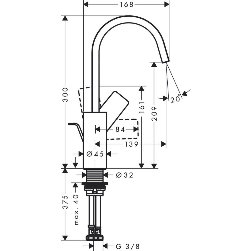 A Vivenis mosdócsap 300 mm magas. A forgó kifolyó hossza 139 mm. A komfortzóna mérete 209 mm. Ez a mosogató csaptelep gyönyörű és részletgazdag megjelenése mellett egyedülálló WaterfallStream- ével is magával ragad, amely vízesésre hasonlít.