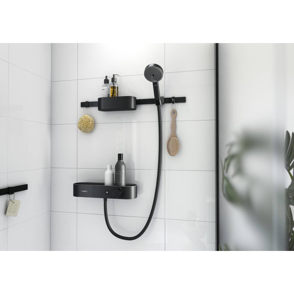 Hansgrohe WallStoris, zuhanyfej készlet 105, 3 fúvóka, termosztát és fürdőszobai kiegészítők, fekete matt, 24250670