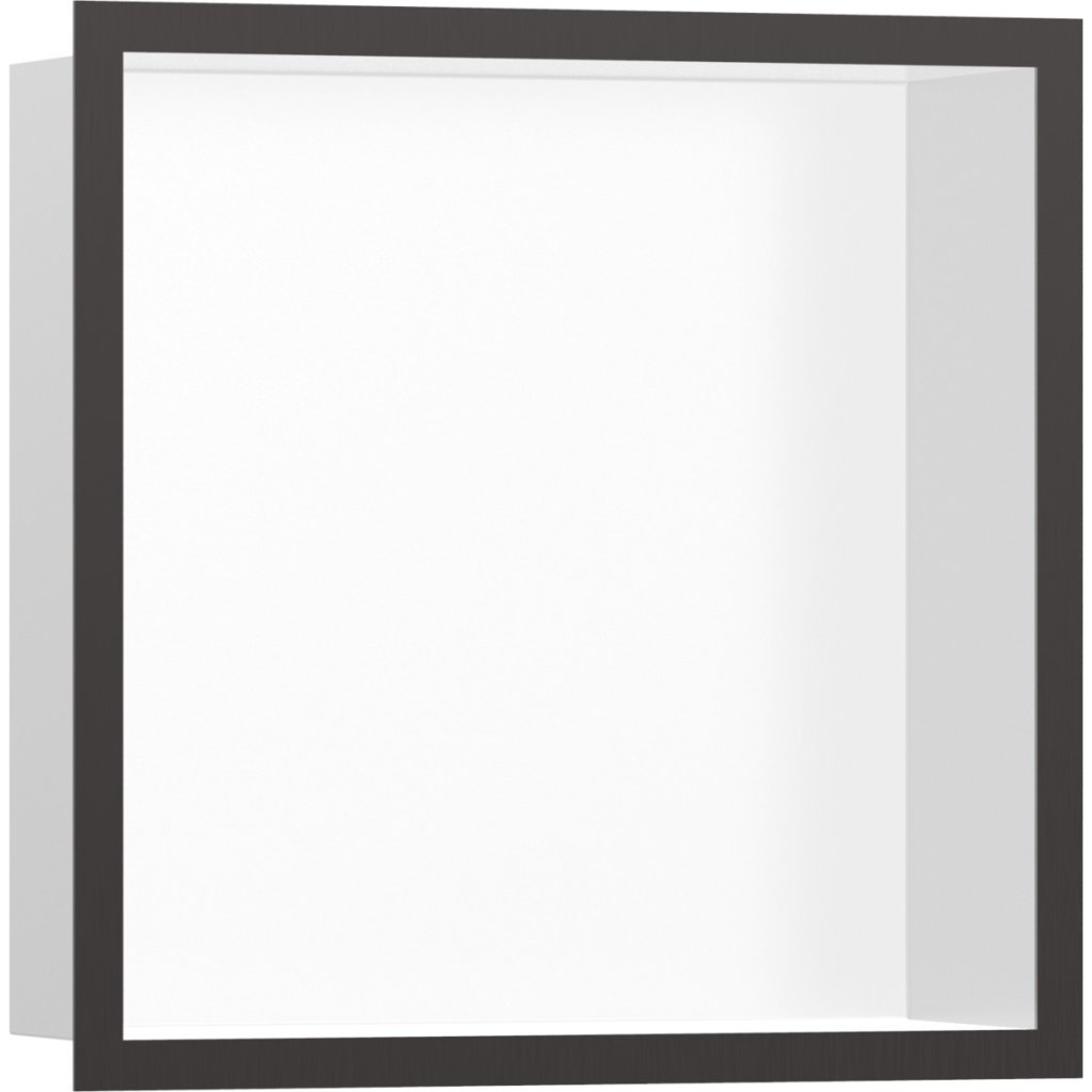 Hansgrohe XtraStoris Individual, fali fülke matt fehér, design kerettel 300x300x100mm, szálcsiszolt fekete króm, HAN-56099340