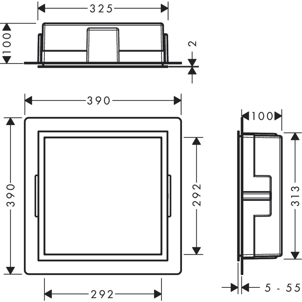 Hansgrohe XtraStoris Individual, fali fülke matt fekete, design kerettel 300x300x100mm, szálcsiszolt rozsdamentes acél, HAN-56098800