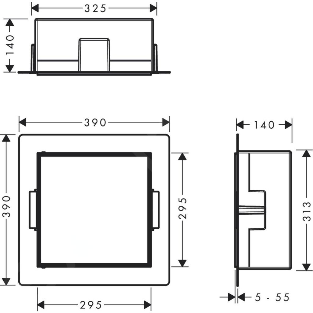 Hansgrohe XtraStoris Rock, fali fülke, ajtóval, 300x300x140 mm, szálcsiszolt rozsdamentes acél, HAN-56091800