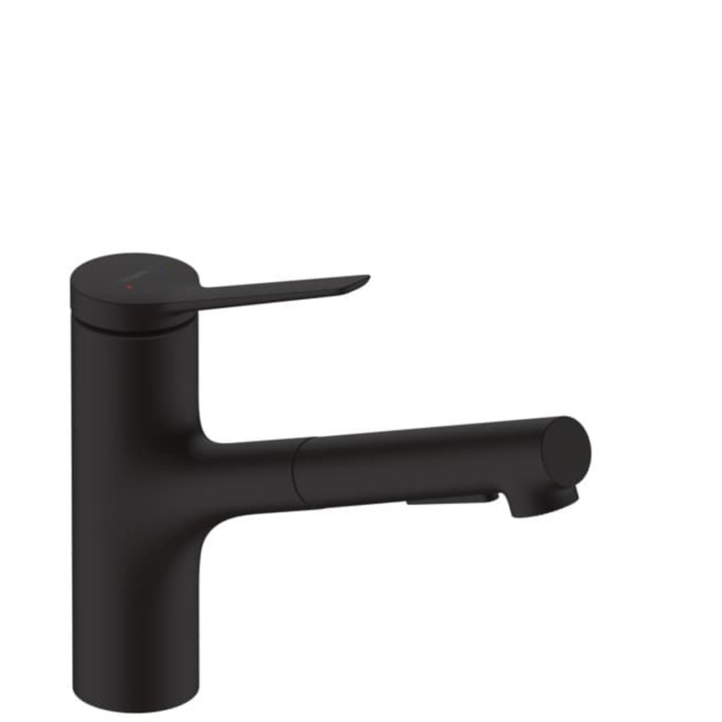 Hansgrohe Zesis M33, mosogató csaptelep 150, kihúzható spray-vel, sBox lite, fekete matt, 74803670