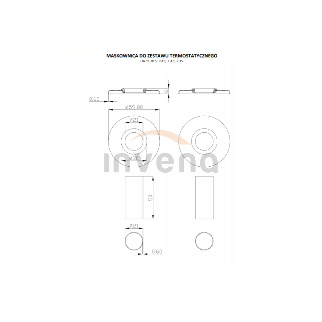 Az exkluzív, hüvelyes rozettakészlet a radiátor axiális dekoratív csatlakozását hivatott elfedni. Csatlakozás többrétegű és rézcsövek szereléséhez. Az 50 mm hosszú maszkoló hüvelyek 16 mm - PEX és 15,18 mm - réz átmérőjű összekötő csőbe illeszkednek. A speciálisan használt megfelelő típusú sárgaréz, amelyből az ujjak készültek, megkönnyíti a megfelelő hosszúságúra rövidítést. A festékbevonatú rozsdamentes rozetta kétszeresen védett a kondenzációs korrózió ellen.