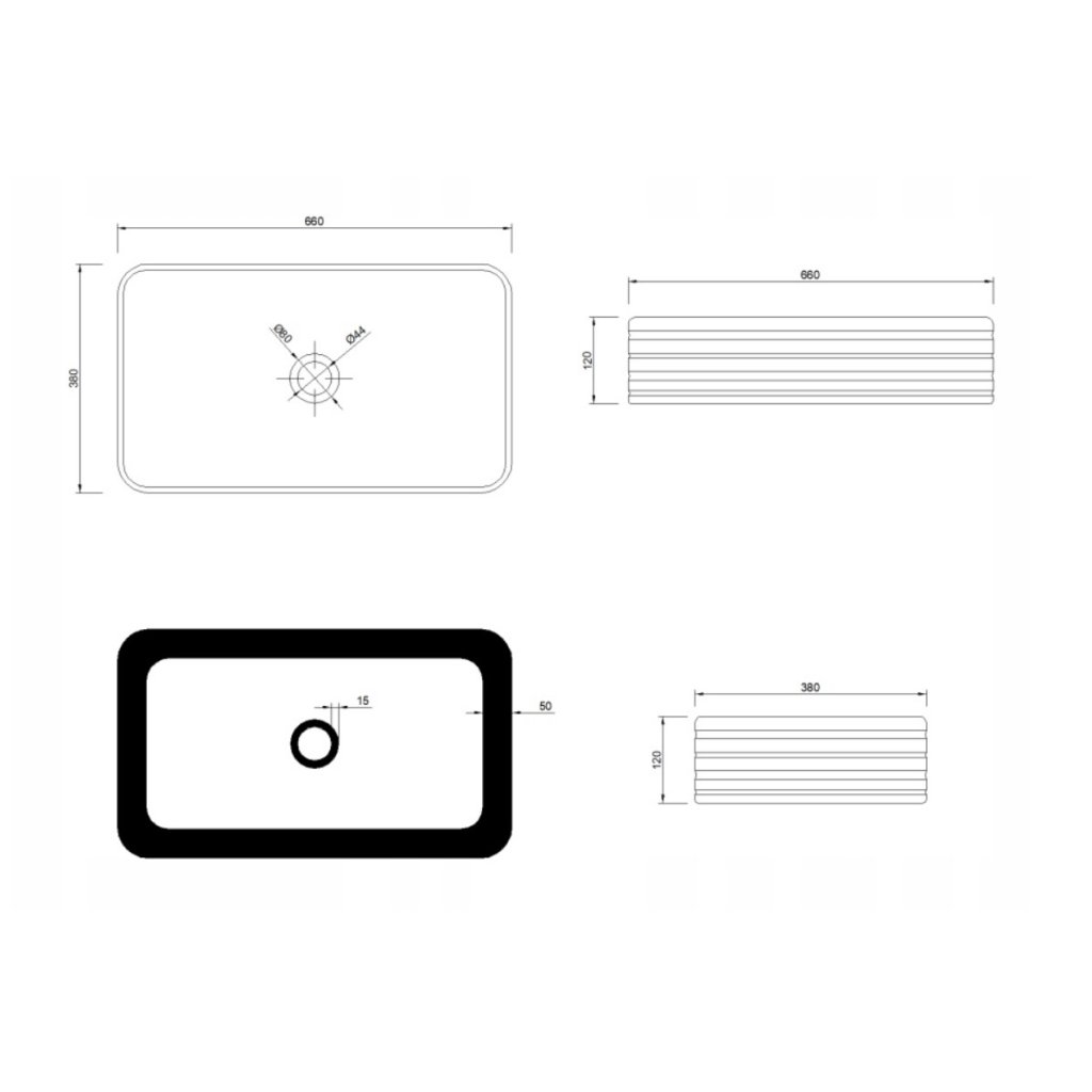 Invena Akte, asztali mosogató 66x38x12 cm, fehér, INV-CE-54-P01-C