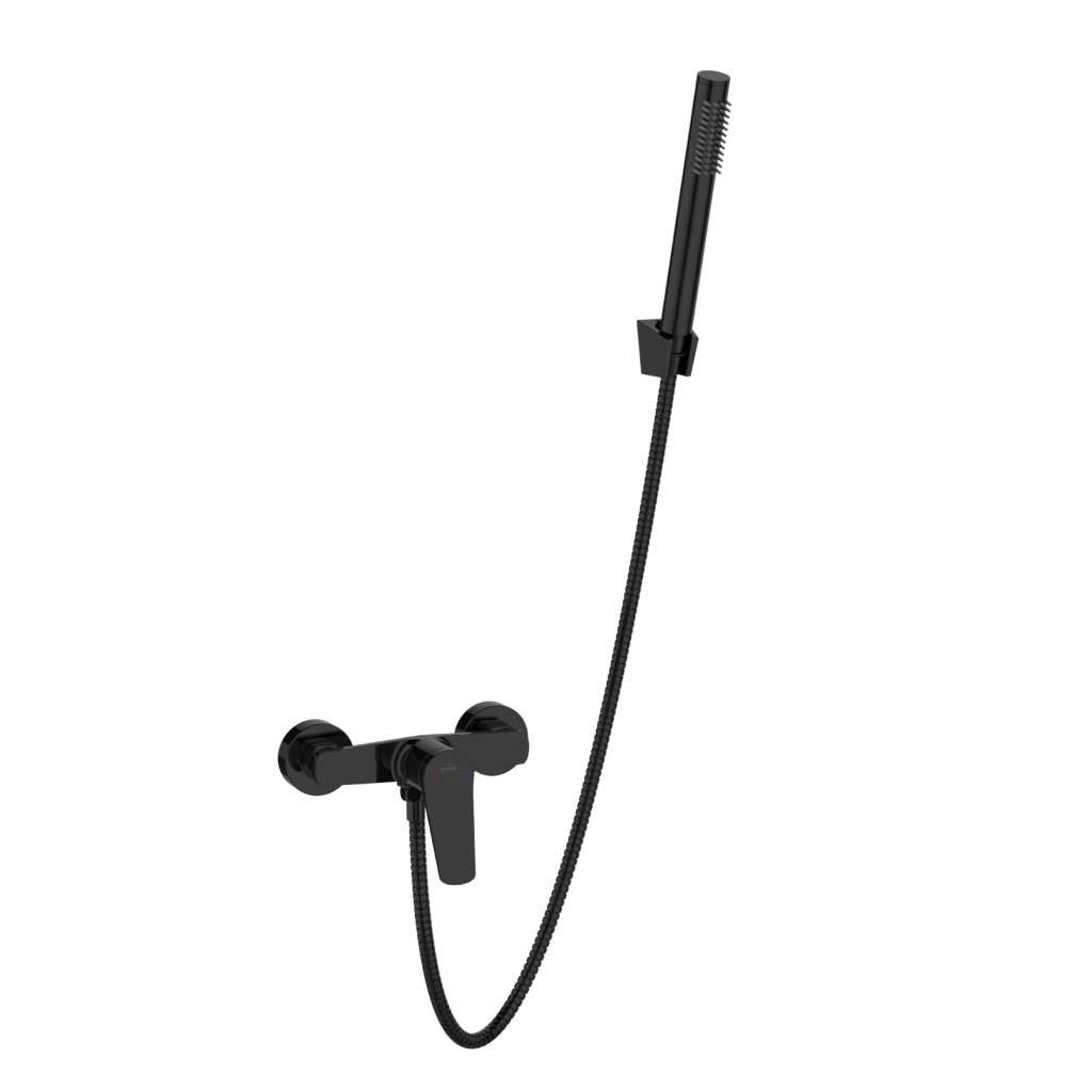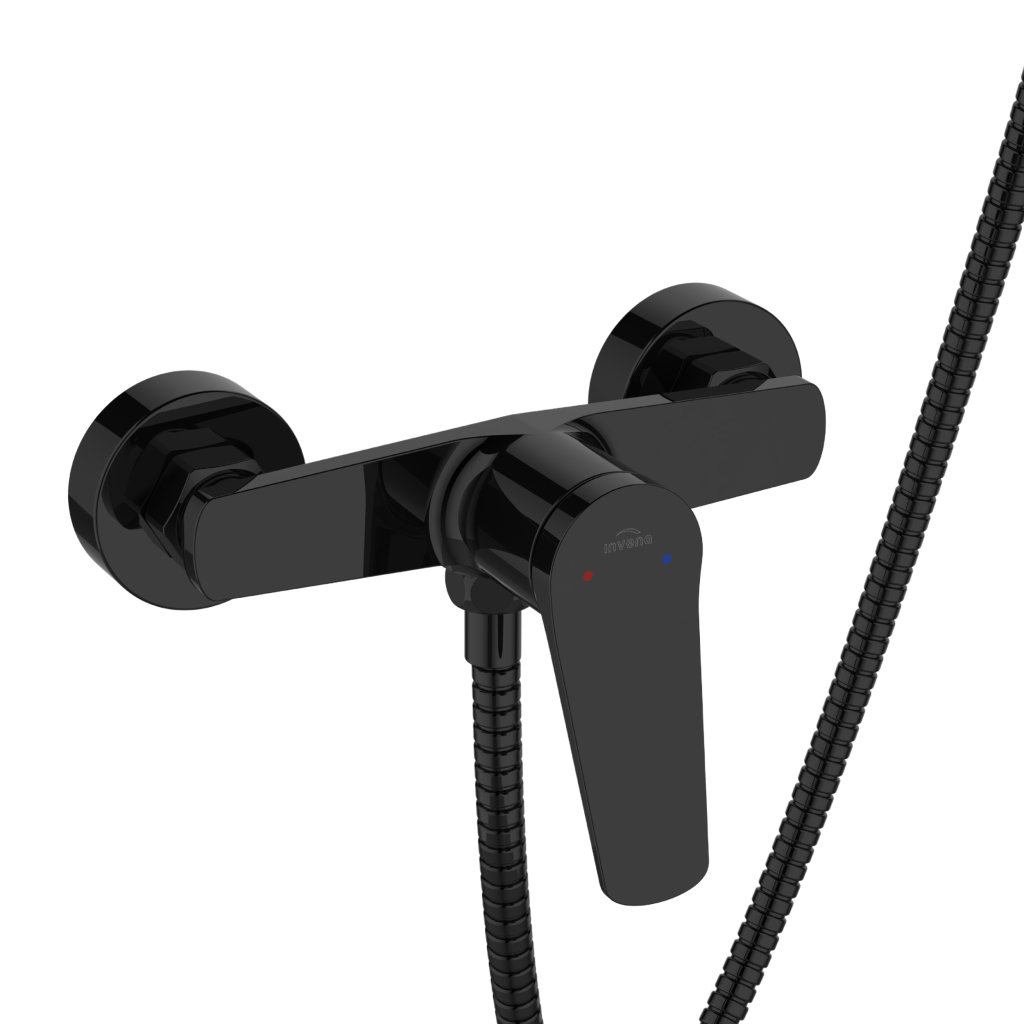 Invena Alonia, fali zuhanycsaptelep kézizuhannyal, fényes fekete, INV-BN-70-004-V