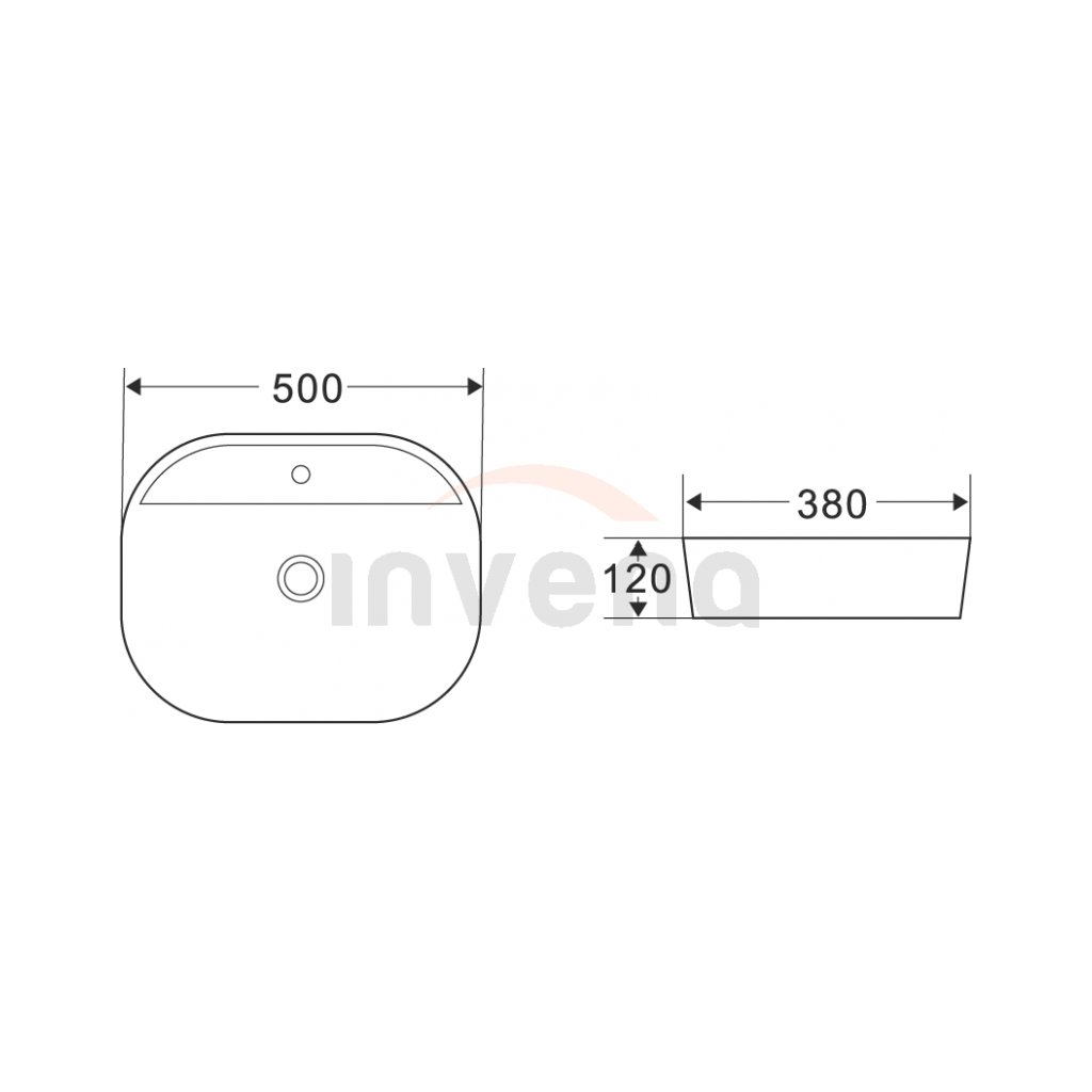 Invena Corso, asztali mosogató 50x38x12 cm, fehér, INV-CE-42-001-C
