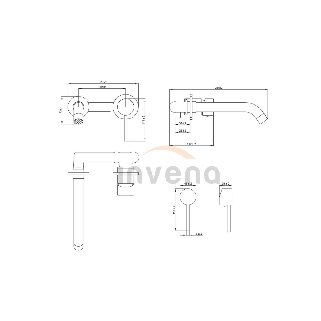 Invena Dafni, rejtett mosdócsaptelep, króm fényes, BP-88-U01-A