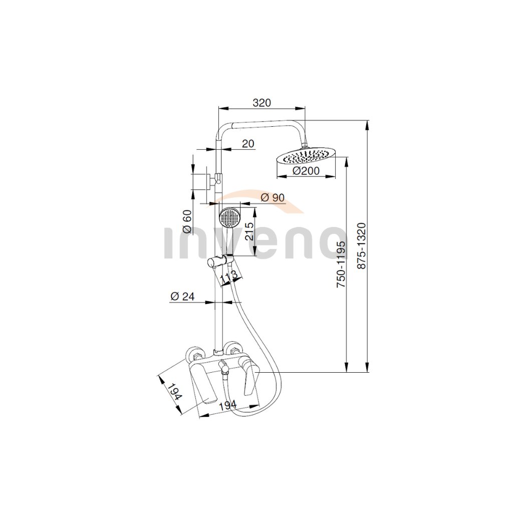 - Állítható magasságú zuhanyoszlop: 87,5-132 cm