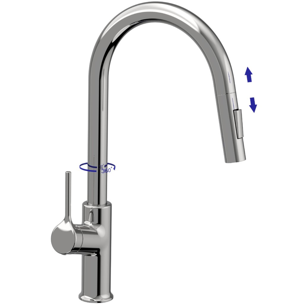 - Típus: mosogató csaptelep forgatható karral és 2 funkciós kihúzható kifolyóval