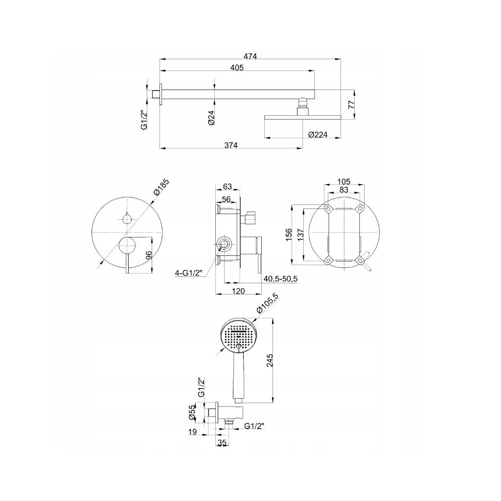 - Típus: rejtett zuhanyszett fejzuhany és kézi zuhanyfejjel