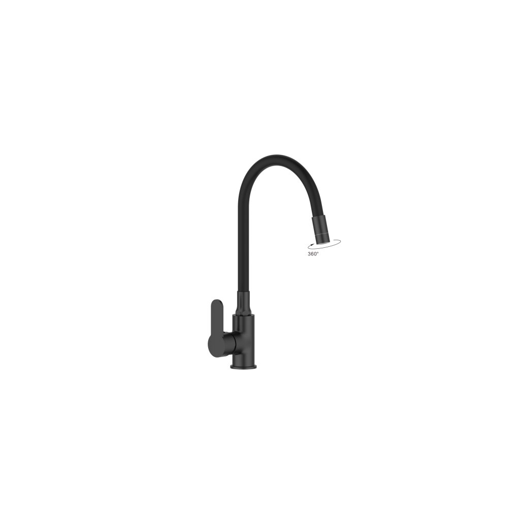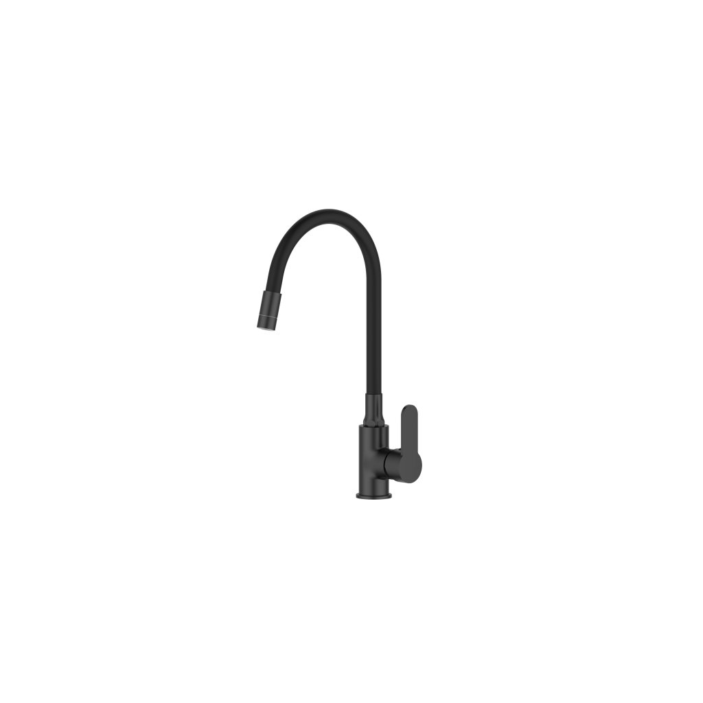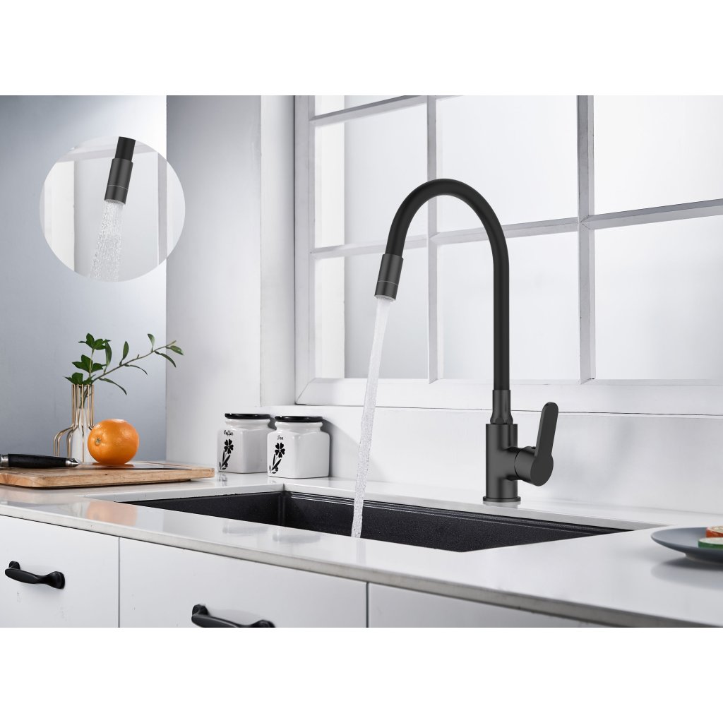 Invena Ksanti, mosogató csaptelep rugalmas karral és 2 funkciós levegőztetővel, fekete matt, INV-BZ-37-004-L