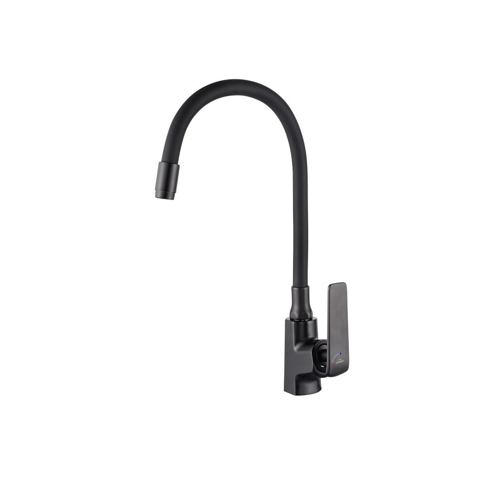Invena Ligaria, magas mosogatós csaptelep elasztikus karral, Eco Start rendszerrel, matt fekete, INV-BZ-39-004-L