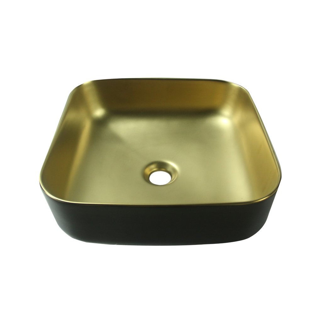 Invena Malaga, kerámia munkalap mosogató 39x39x14 cm, arany matt-fekete matt, INV-CE-39-017-C