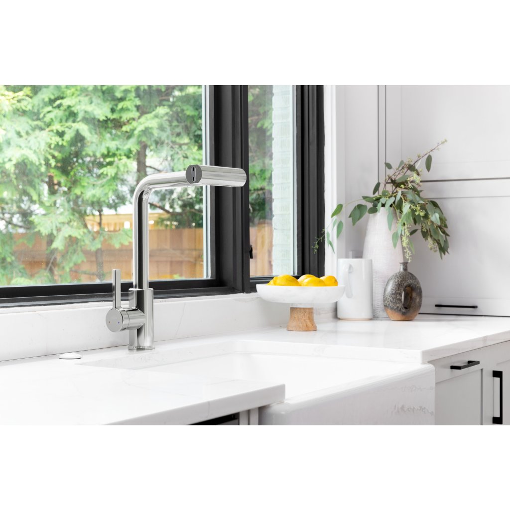 Az Invena 4 funkciós Nelia mosogatócsaptelepe egy modern megoldás, amely ötvözi a funkcionalitást az esztétikus dizájnnal, és tökéletesen illeszkedik bármilyen mosdózónába. Az egyedi, visszahúzható, négyfunkciós kifolyónak köszönhetően teljes szabadságot és kényelmet biztosít a mindennapi használat során. A csaptelep 360°-ban elforgatható kifolyóval rendelkezik, amely lehetővé teszi a négy elérhető sugártípus egyikének használatát: normál, vízesés, zuhany és permetező. Könnyen elérheti a mosogató minden sarkát, és emellett nagyobb kényelmet élvezhet a mindennapi konyhai feladatok során.