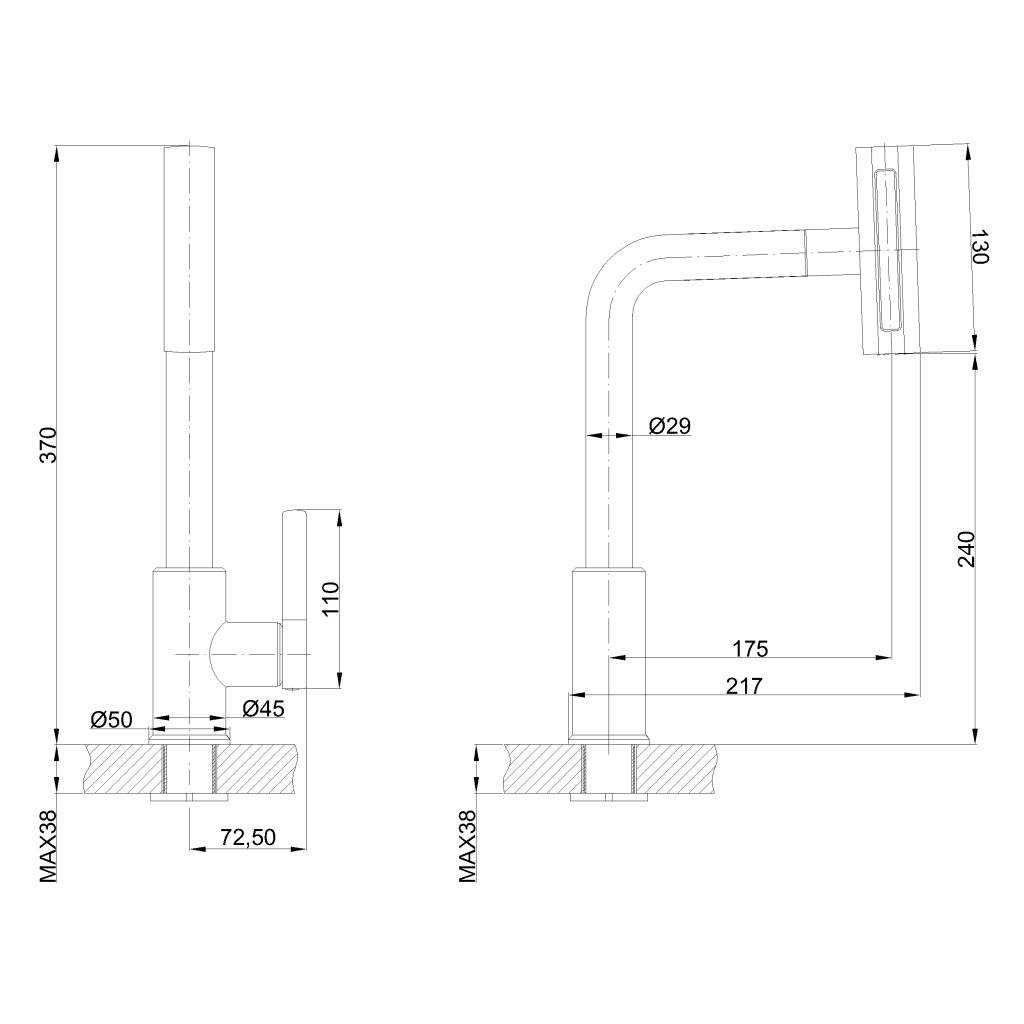 - Kifolyó: forgatható, kihúzható, 4 funkciós