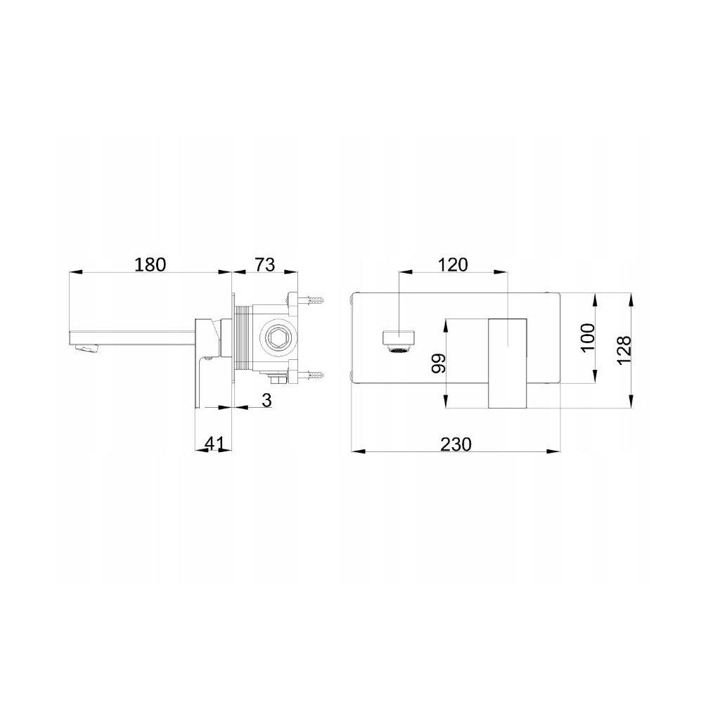 - Modern, egyszerű forma téglalap alakú rozettával és szögletes kifolyóval