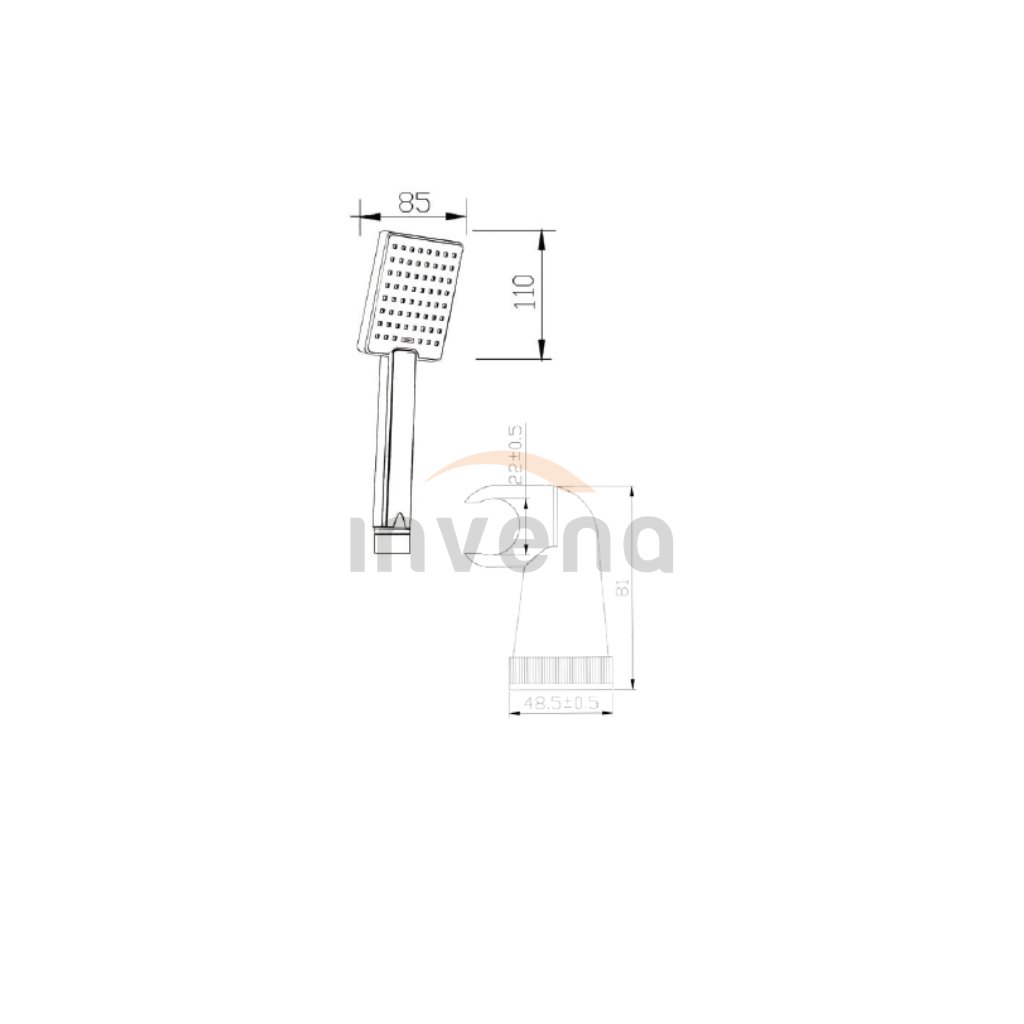 Invena Patras, 1 pontos kézizuhany készlet, fekete matt, INV-AU-31-M04-G