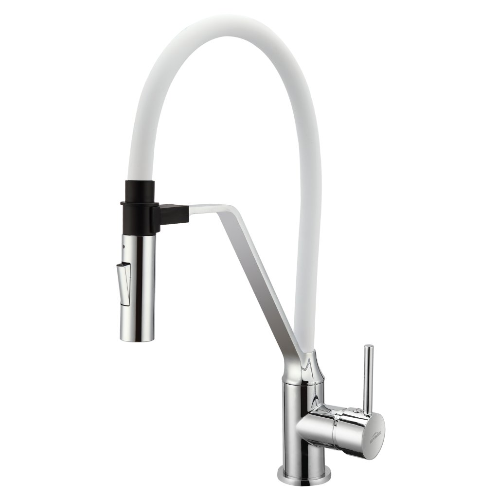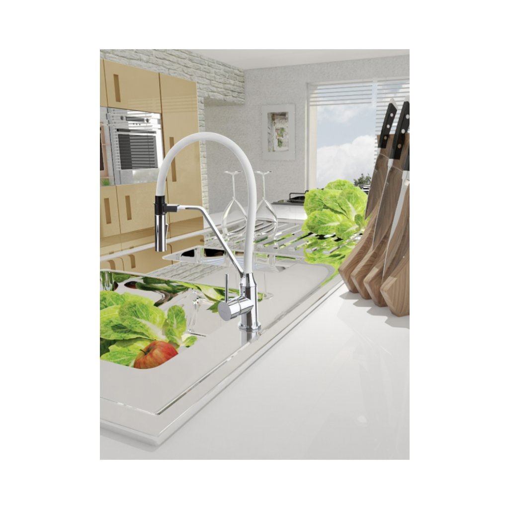 Invena Terra, elasztikus karral ellátott konyhai csaptelep, fehér-króm, INV-BZ-54-L02-D