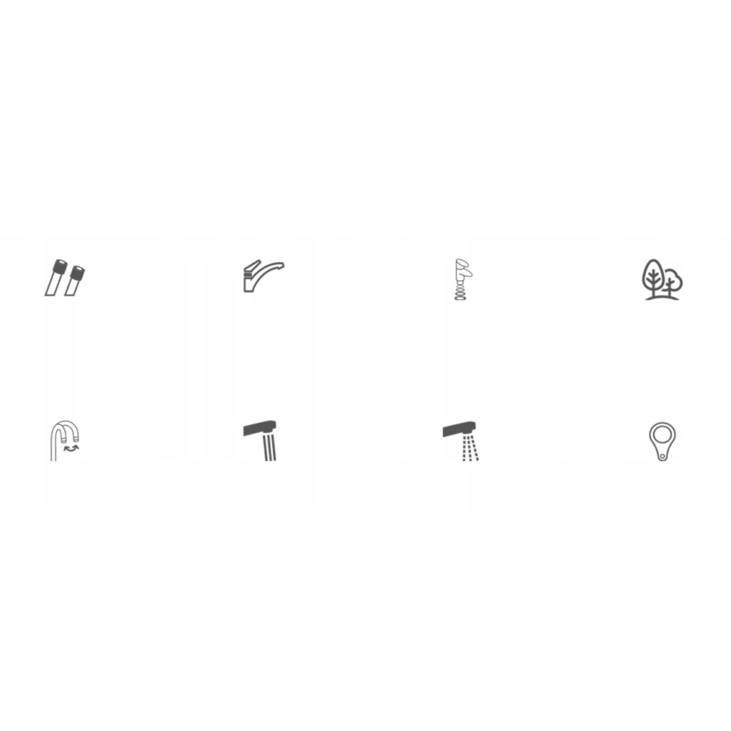 - Kar: forgó, mozgatható kétfunkciós kifolyóval (normál áramlás, spray) mágneses tartóval